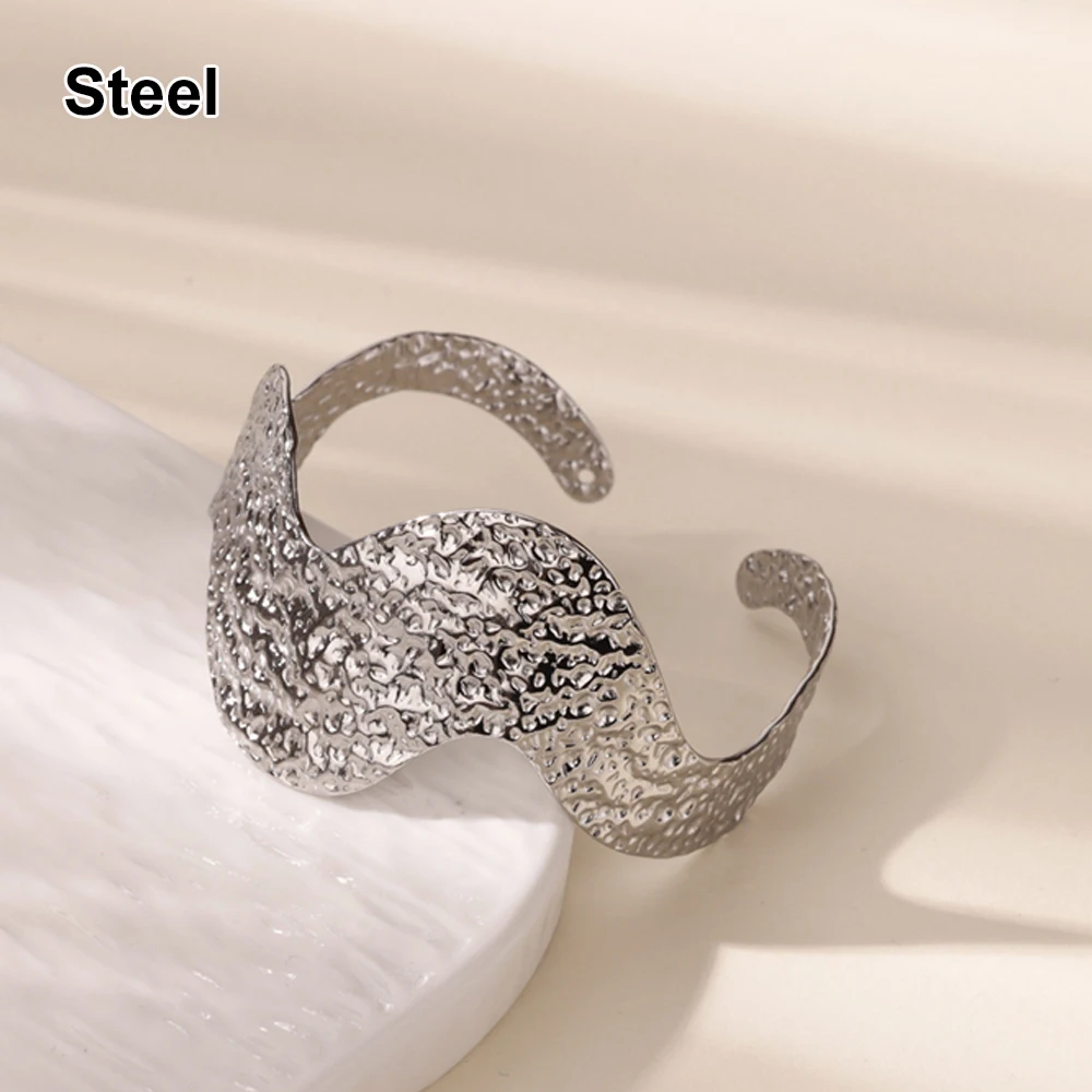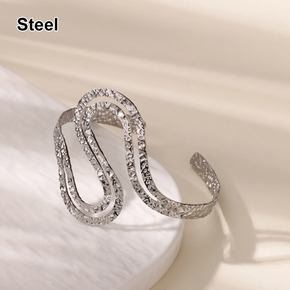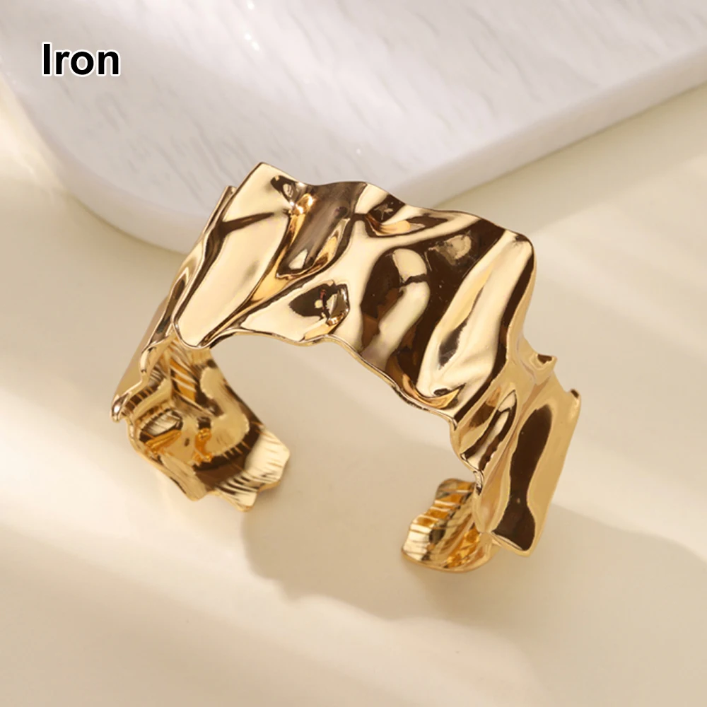 Die-casting Irregular Wave Bangles for Women Gold Color Geometric Layered Cuff Bangle Bracelet femme Vintage Wedding Jewelry