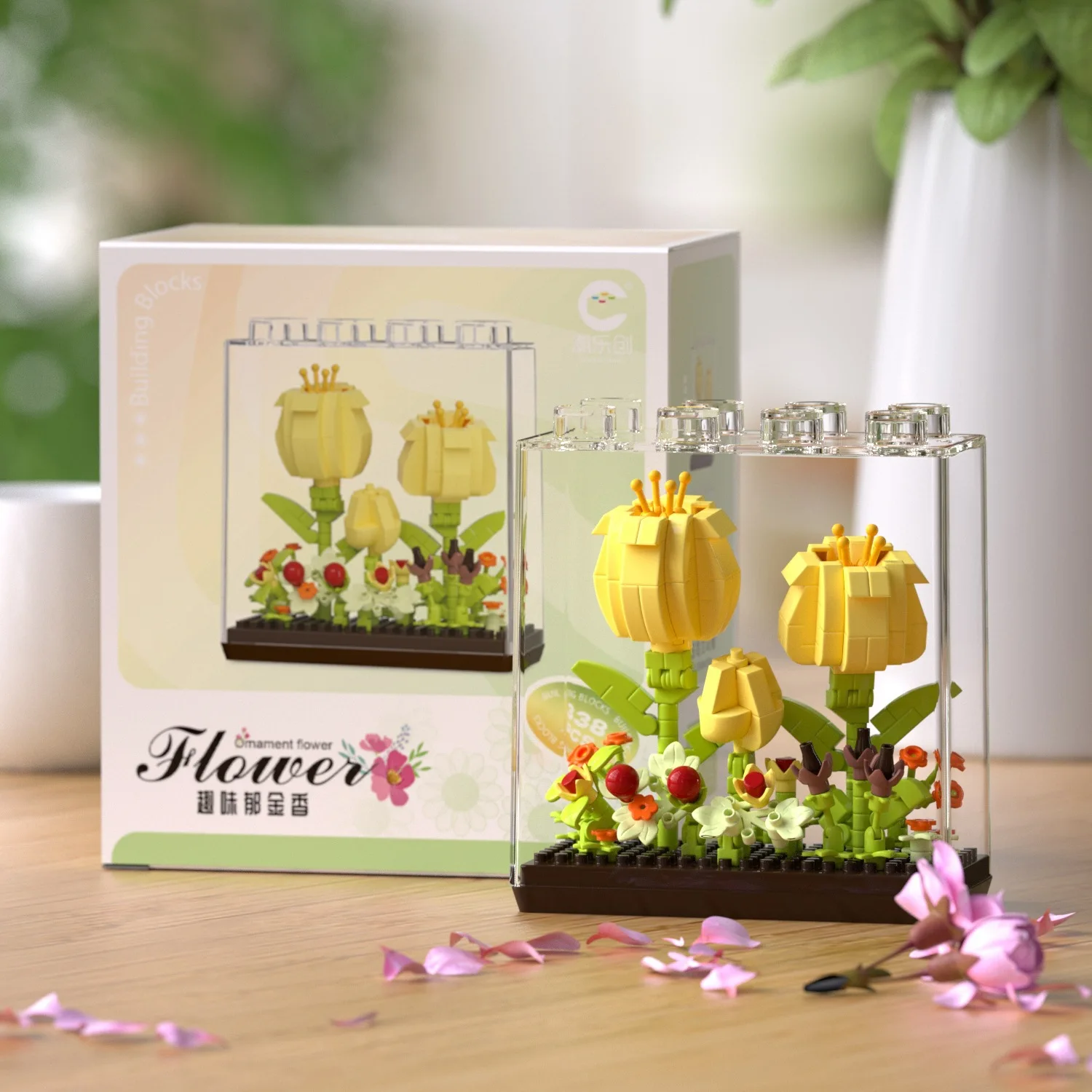 DIY DISPLAY BOX Eternal Flower Immortal Potted Rose Sunflower Gardens Romantic Building Blocks Model Bricks Kids Sets Kits Toys