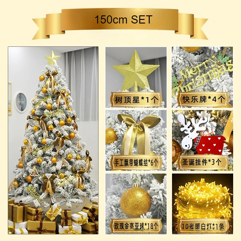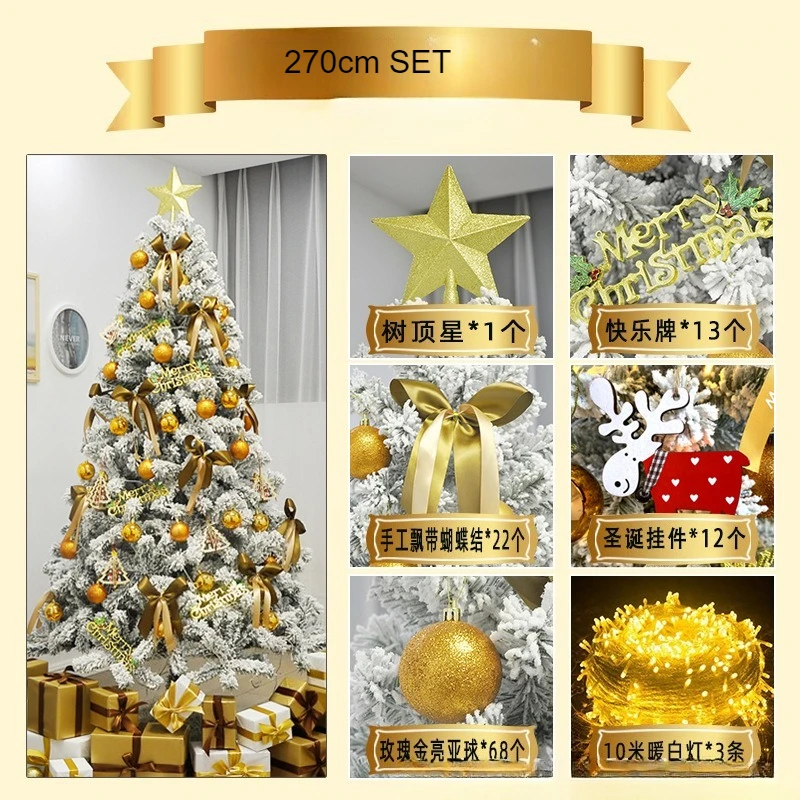 120-300cm Dense Velvet Snow-covered Christmas Tree with Decorations & Light Strings for Christmas Shopping Mall Home Decoration