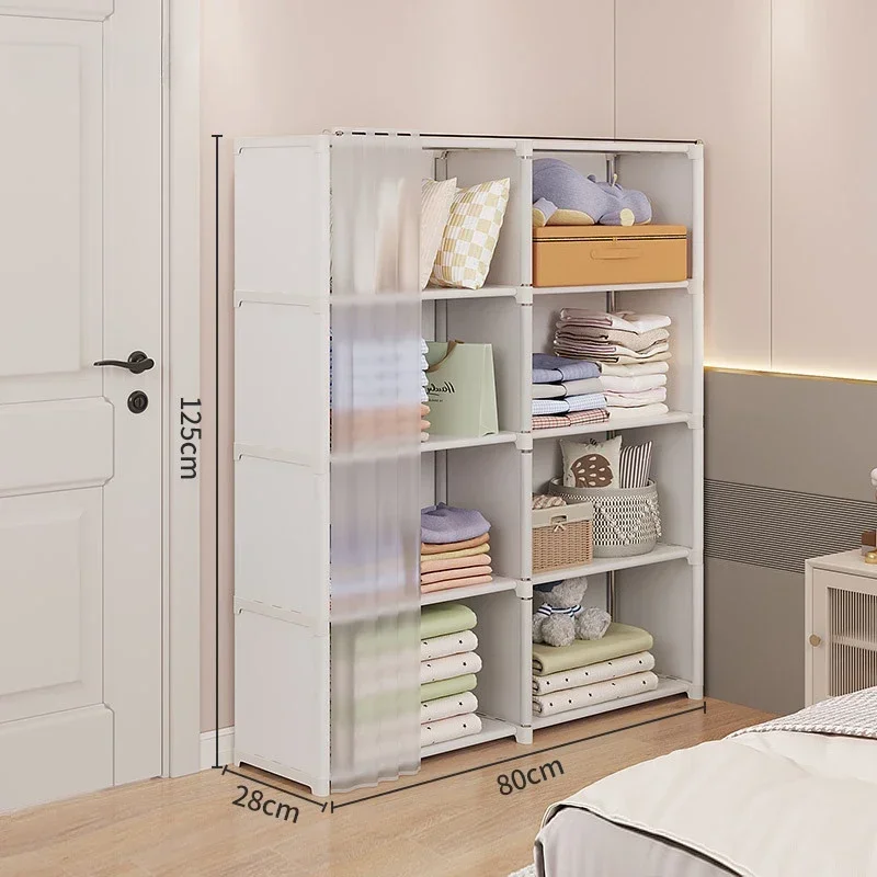 Dustproof Wardrobe Large Capacity Partition Bookshelf Bedroom Open Storage Cabinet Easy Assembly Hanging Wardrobe Small Wardrobe