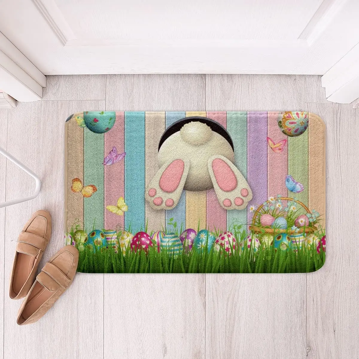 Easter Egg Door Mat Toddler Easter Decor Bathroom Rugs,Cartoon Rabbit Kawaii Carpet Non Slip Indoor Floor Mat For Living Room