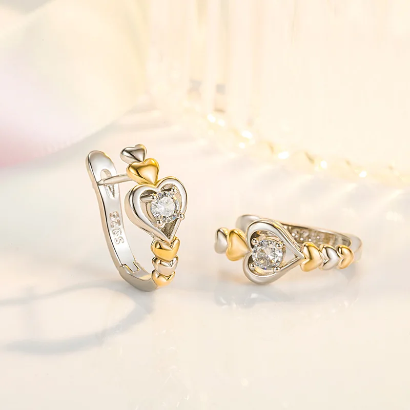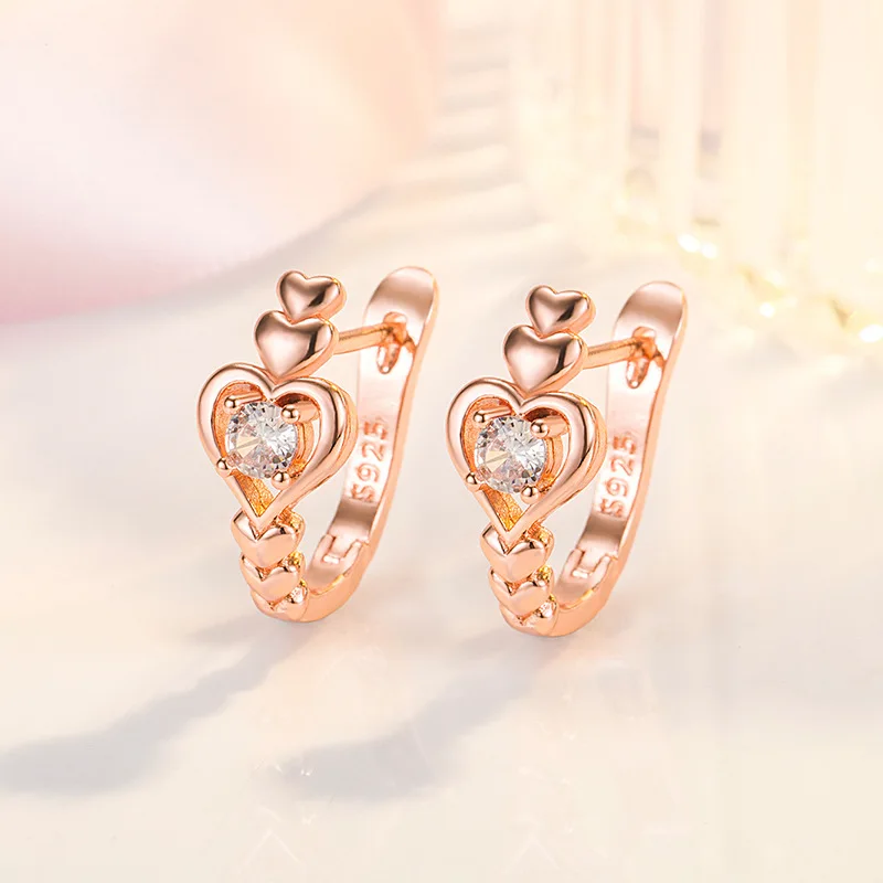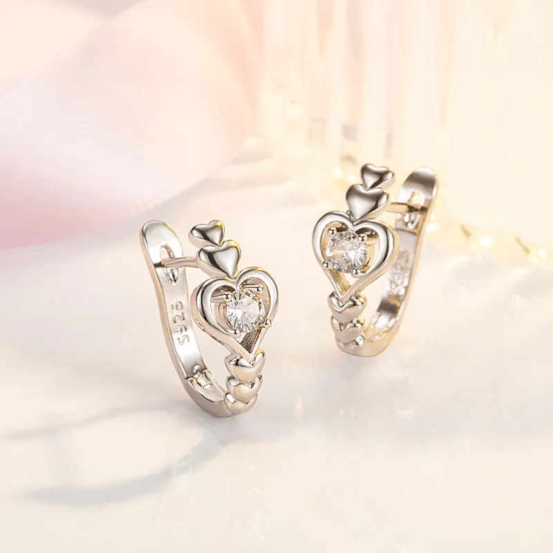 Elegant Love Heart Wedding Earrings Charm Female White Round Crystal Earrings Vintage Gold Color Small Hoop Earrings For Women