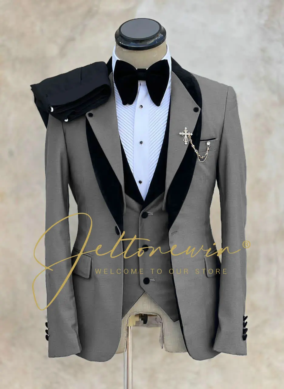 Elegant Men’s Black Tuxedo Suit | 3-Piece Groom Wedding Outfit | Premium Quality Classic Style for Formal Events 2025
