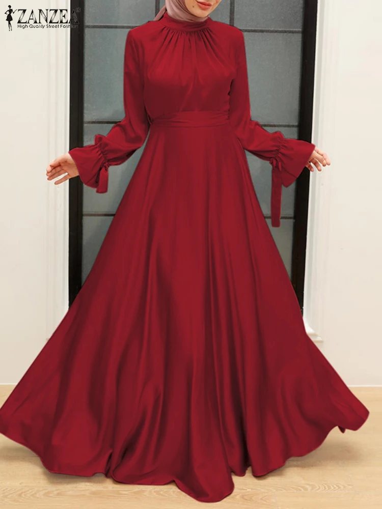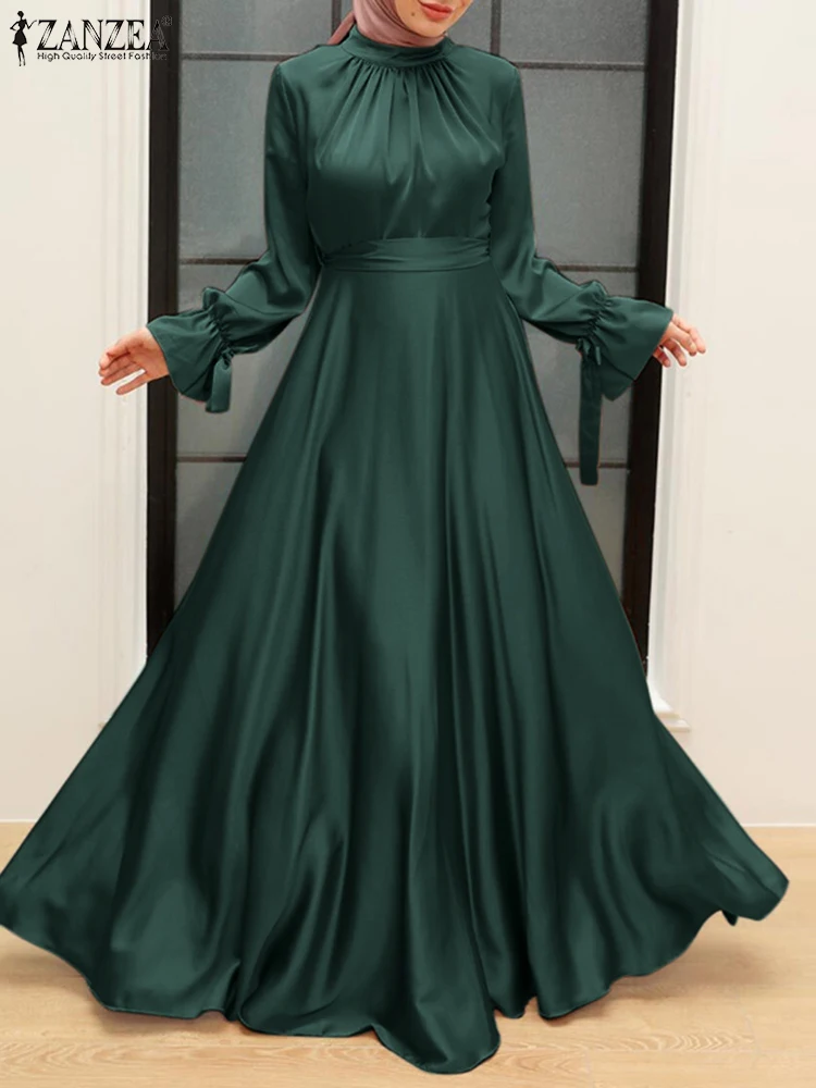 Elegant Muslim Dress Abaya Women Long Dress 2025 ZANZEA Long Sleeve Satin Party Sundress Robe Femme Turkey Hijab Vestidos Kaftan