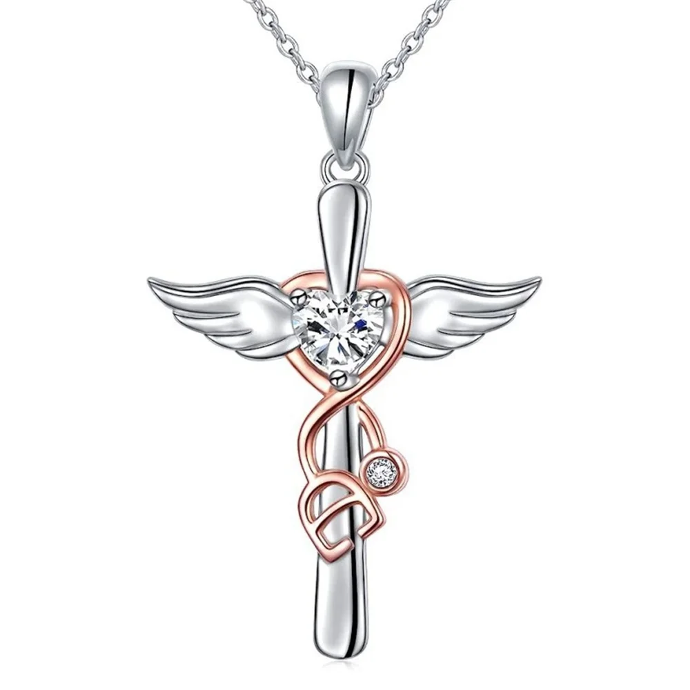 Female Charm Crystal White Stone Heart Pendant Necklace Vintage Silver Color Wedding Jewelry For Women