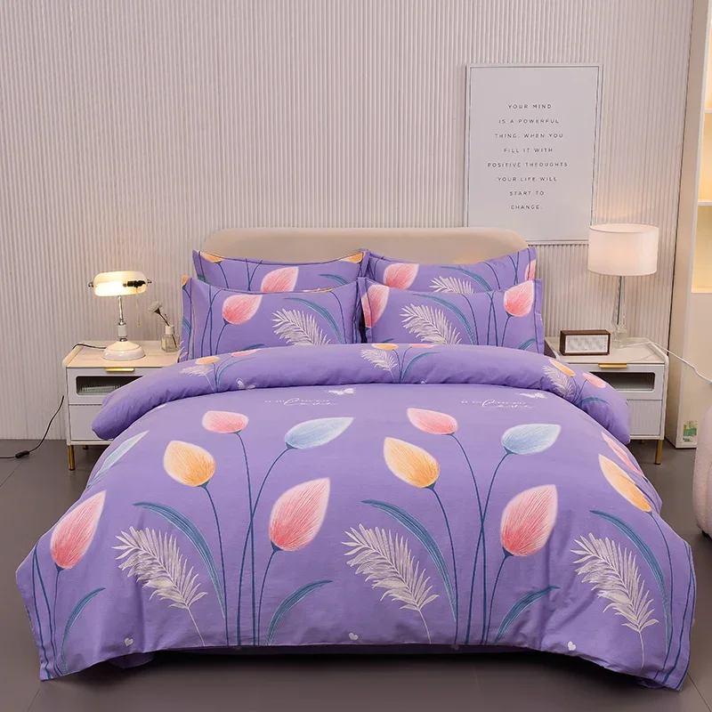 Feather Duvet Cover Queen 100% Cotton Bohemian Feathers Bedding Set Modern Soft Skin-friendly Comforter Cover with 2 Pillowcases