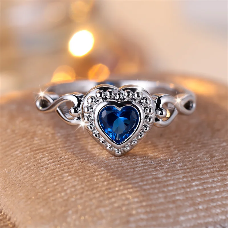 Female Love Infinity Heart Rings For Women Silver Color Blue Stone Bridal Wedding Bands Vintage Valentine Day Party Jewelry Gift
