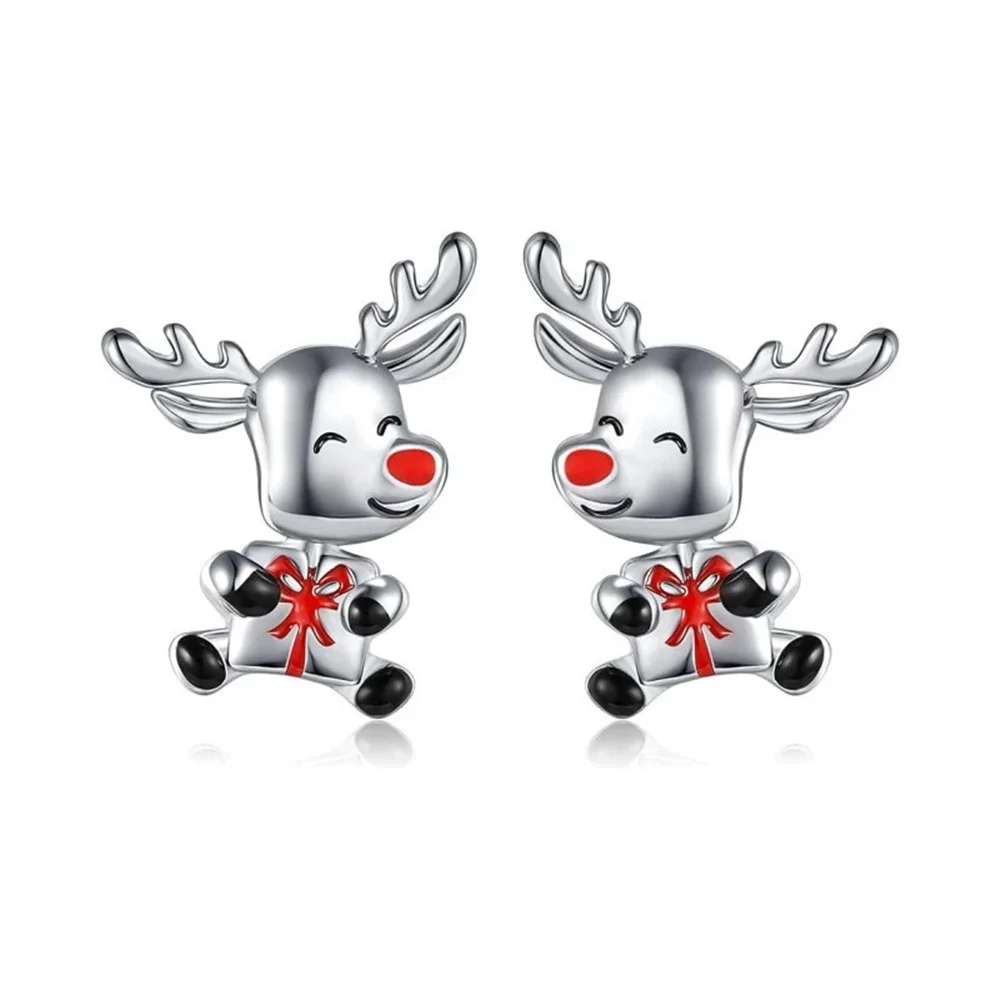 Female Cute Small Deer Animal Stud Earrings Vintage Silver Color Wedding Party Gift Jewelry For Women
