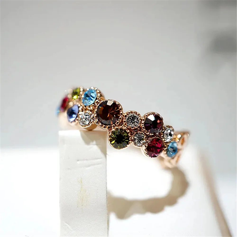 Female Luxury Blue Red Rainbow Zircon Stone Finger Ring Vintage Rose Gold Color Wedding Band Bridal Jewelry For Women