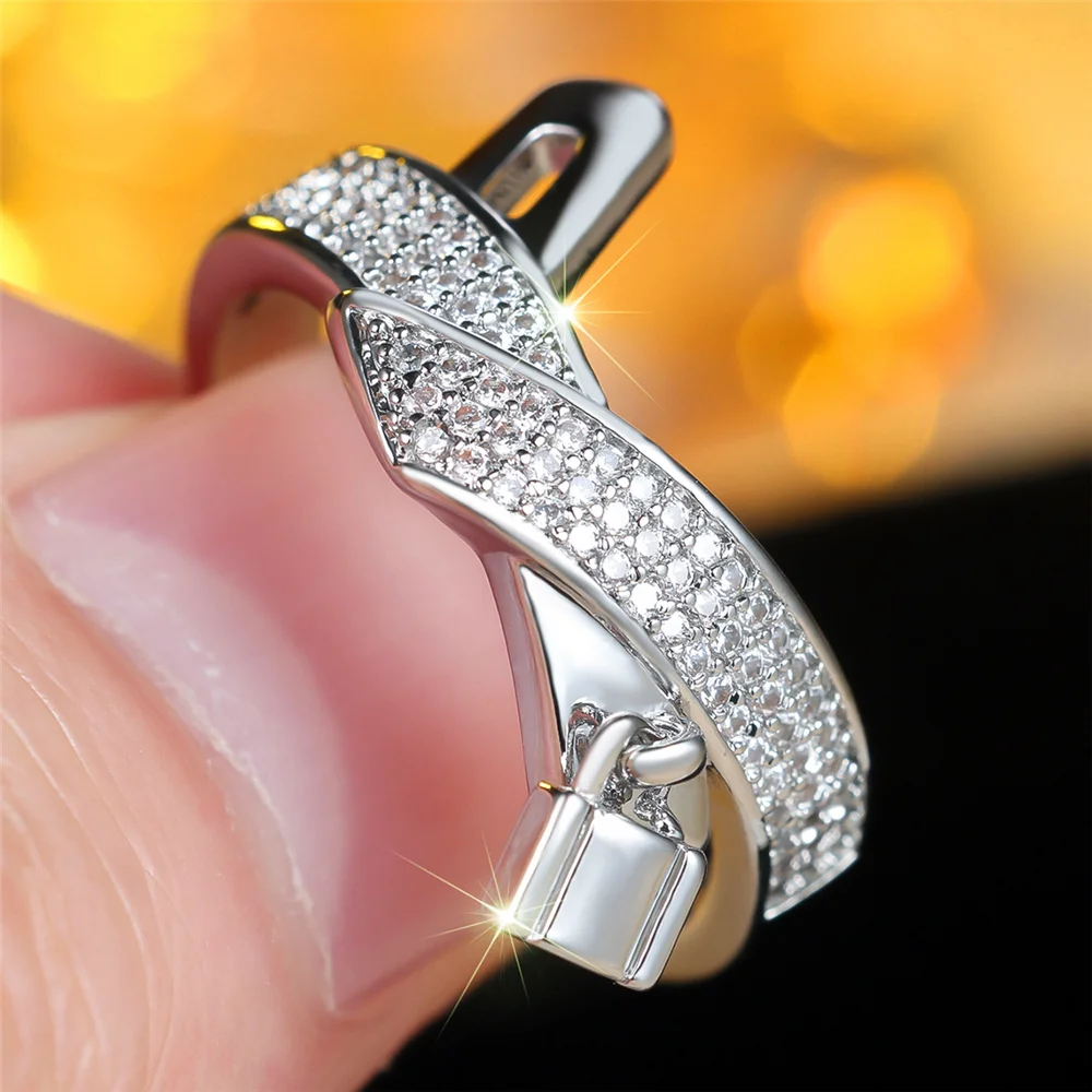 Female Cute White Zircon Stone Silver Color Wedding Jewelry Promise Love Engagement Rings For Women