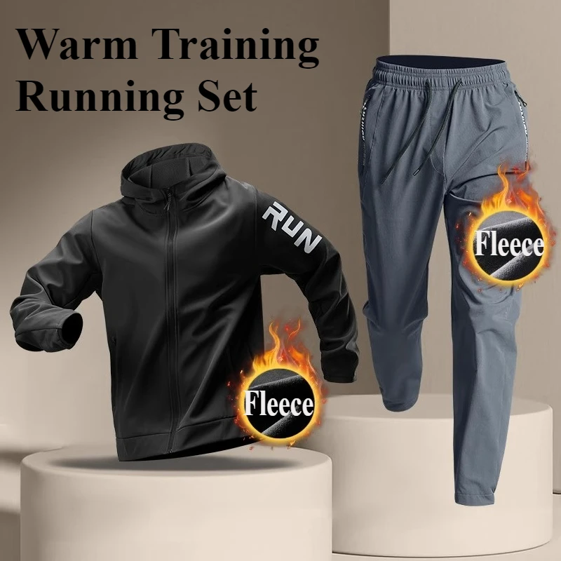 Fleece Warm Running Sportswear Set Men’s Autumn and Winter Fitness Wear Fast Dry Clothes Training Morning Run Outdoor Cycling