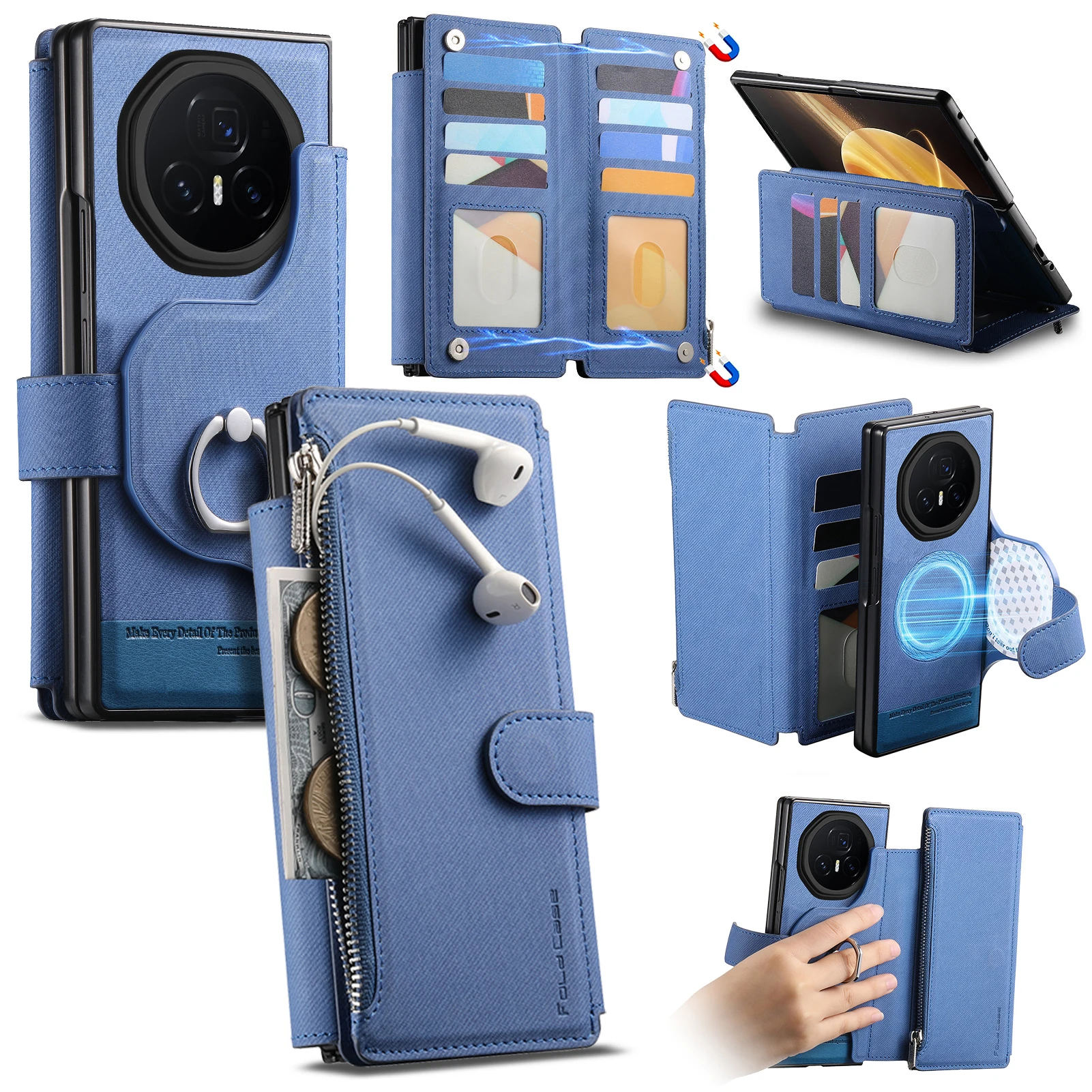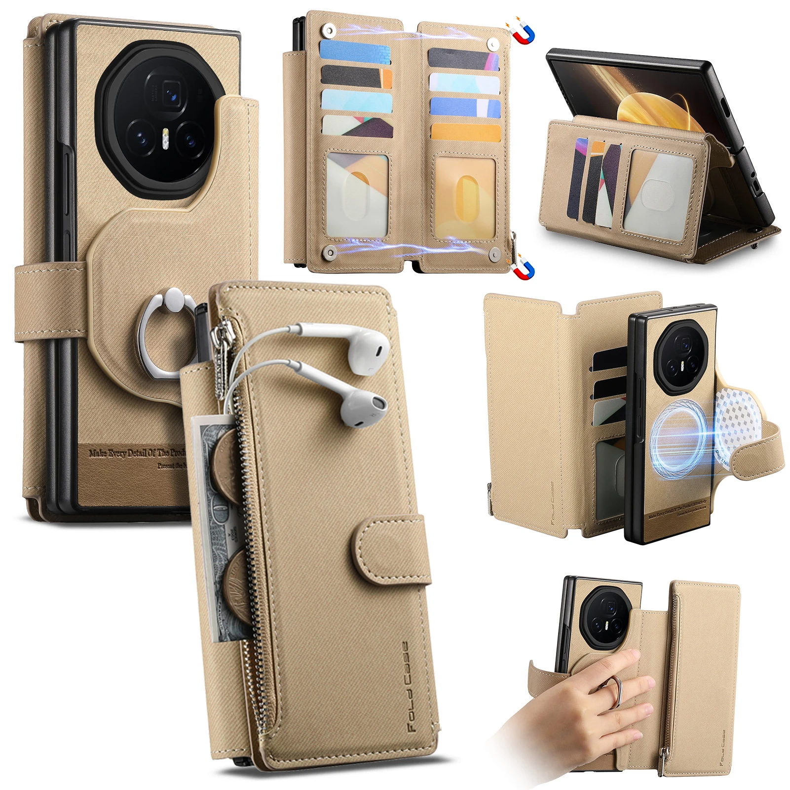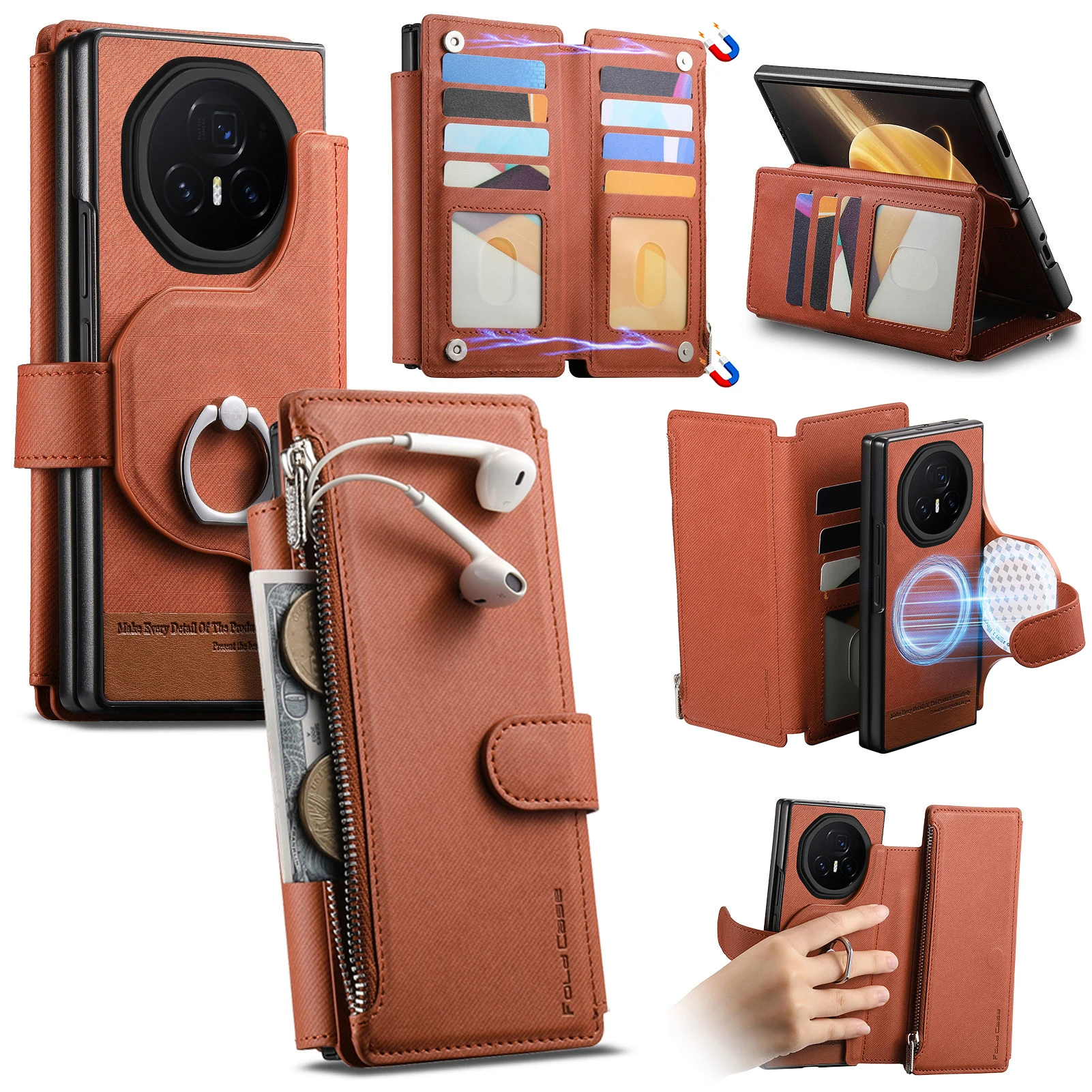 For Honor Magic V3 5G Case 2 in 1 Magnetic Leather Wireless Charge Cards Solt Ring Holder Wallet Folding Shockproof Back Cover
