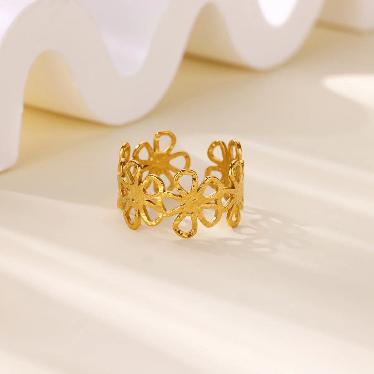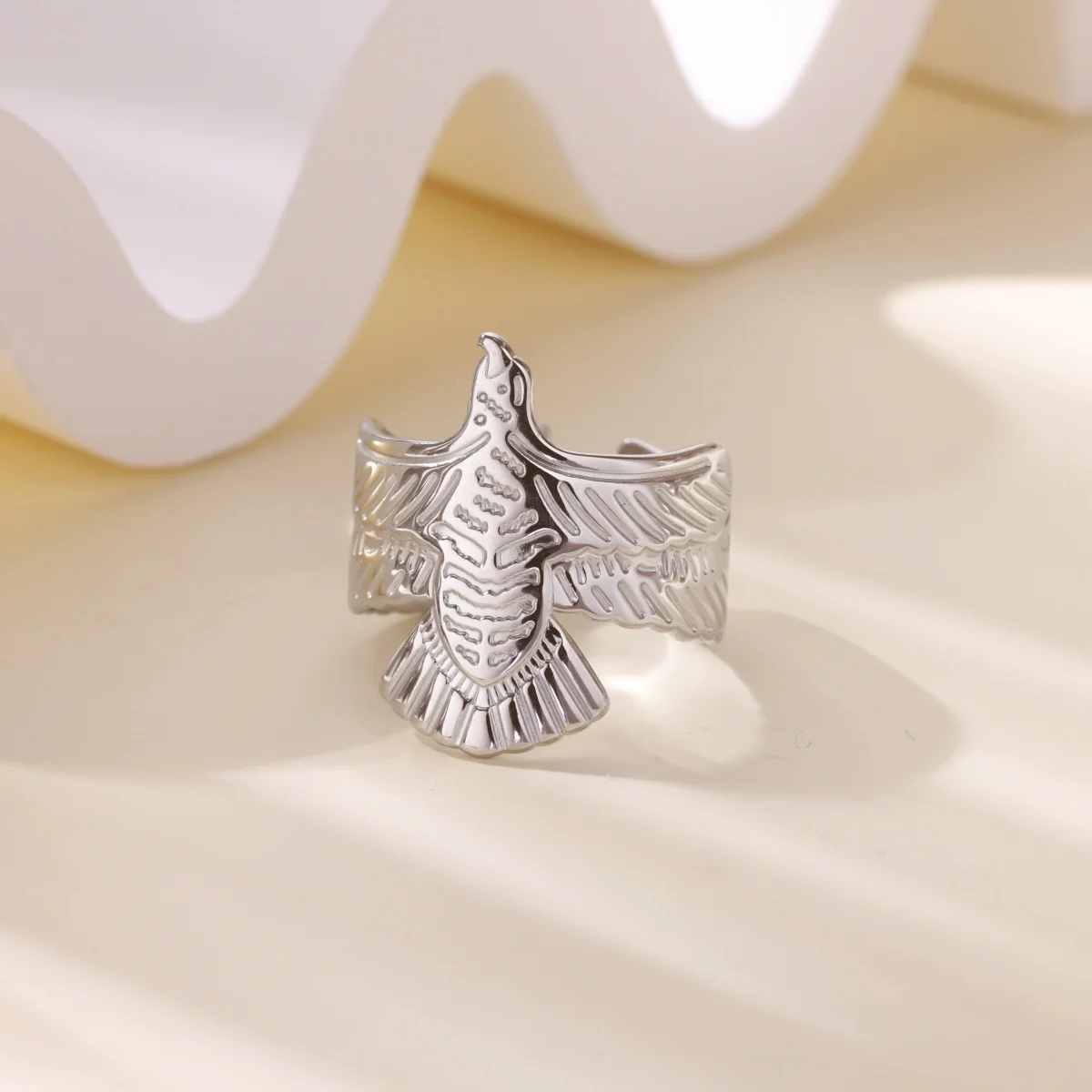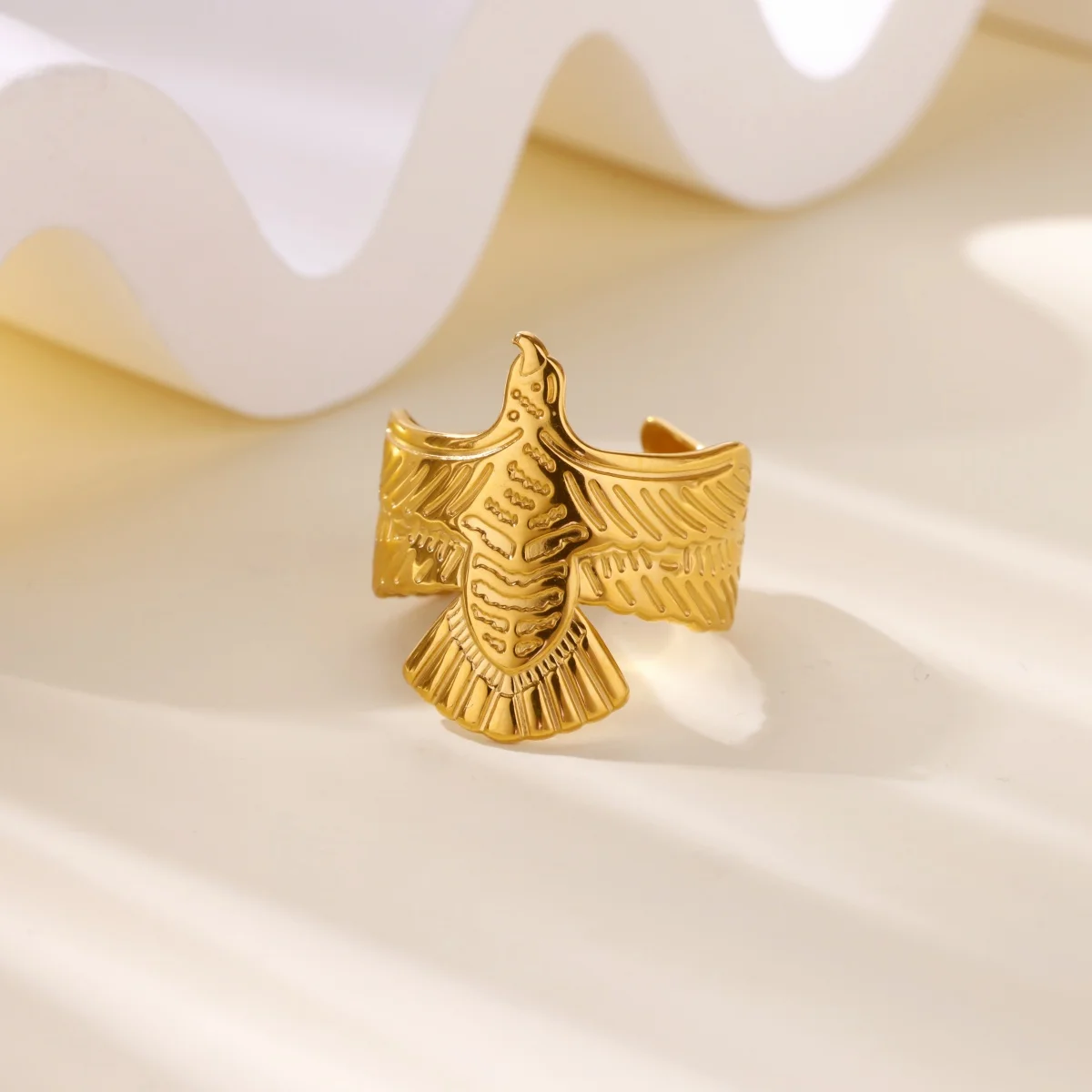 Gold Color Hollow Flower Rings for Women Stainless Steel Geometric Crossed Eagle Ring Aesthetic Wedding Waterproof Jewelry