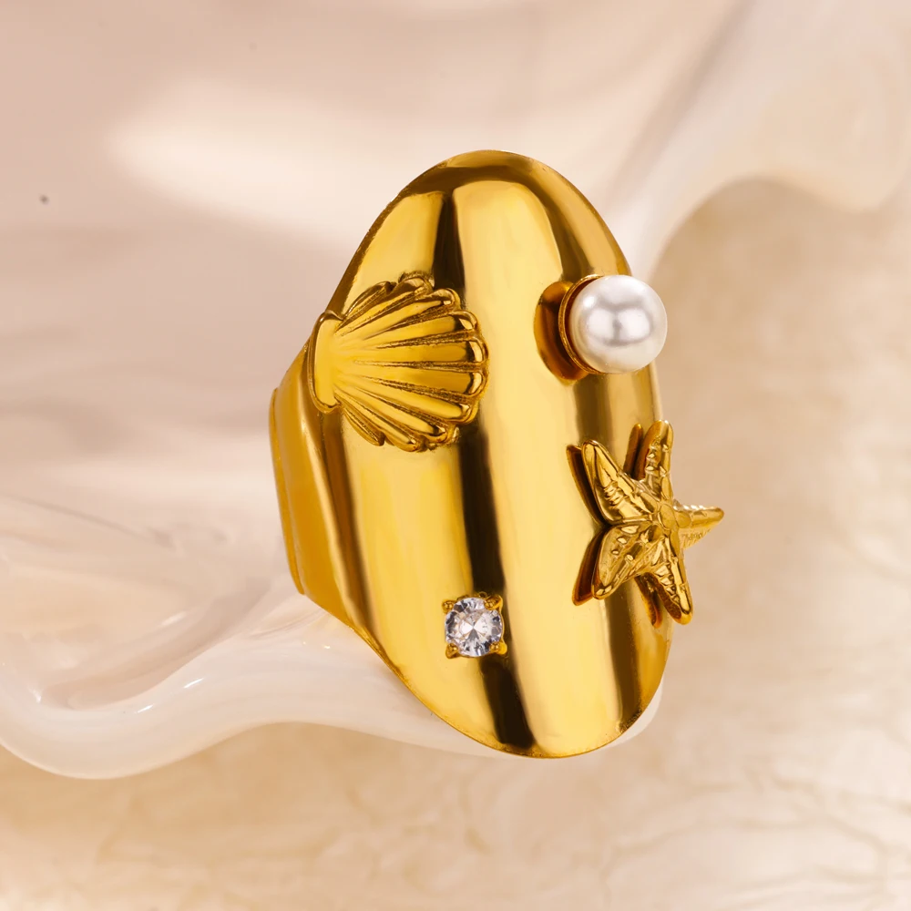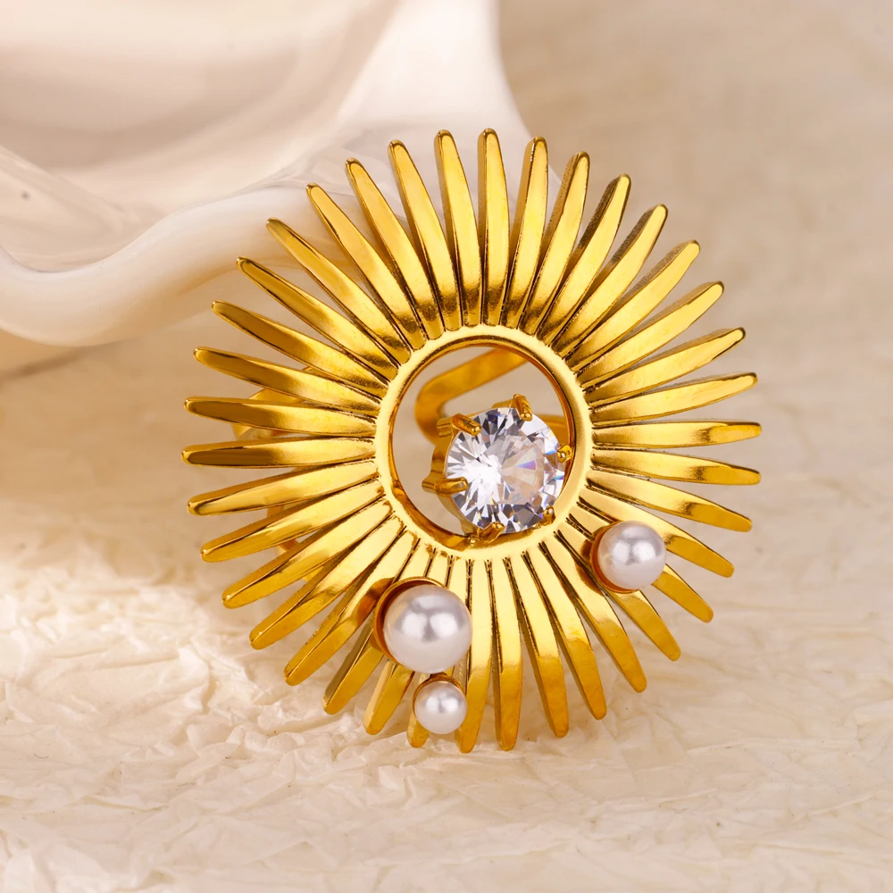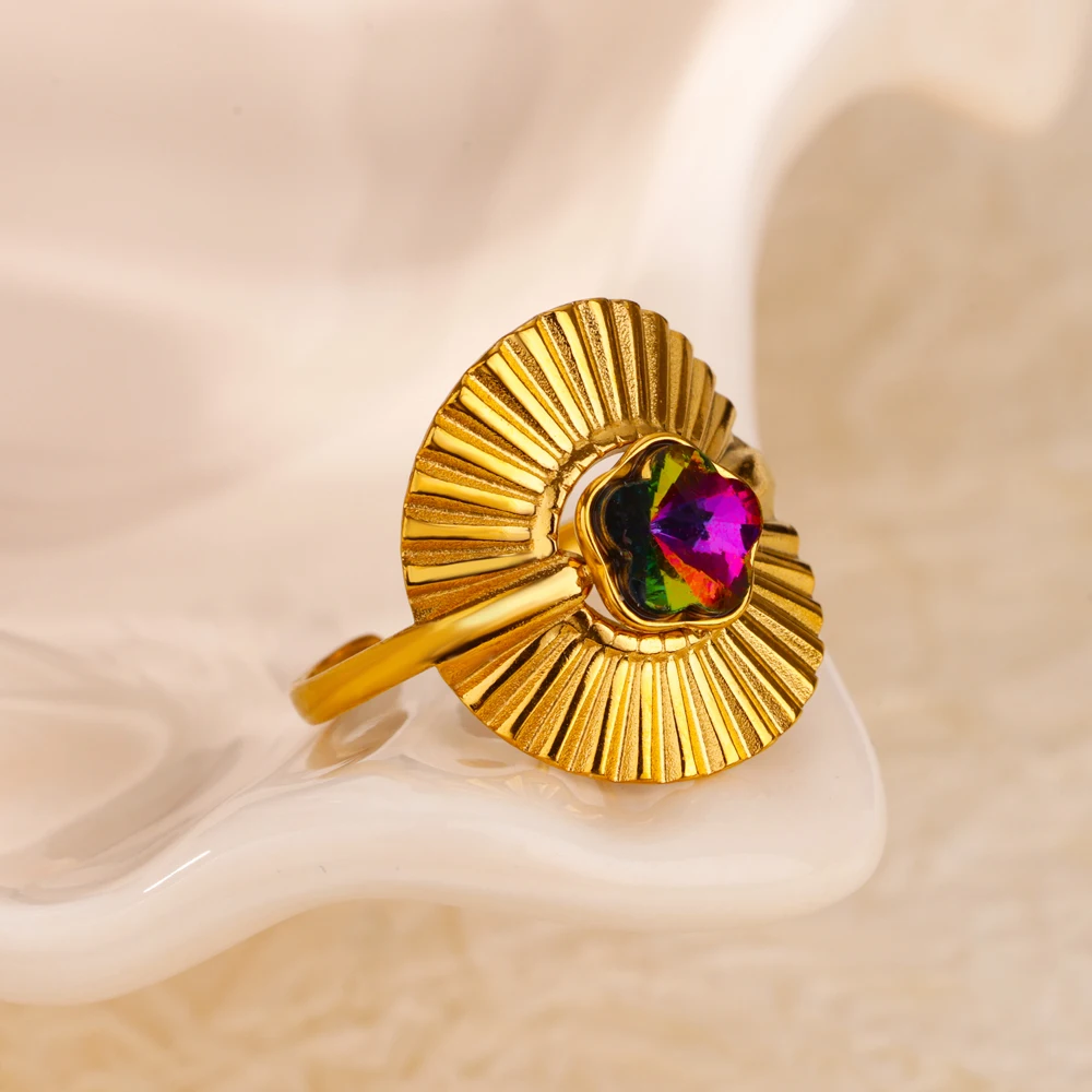 Gold Color Opal Sun Rings for Women Stainless Steel Open Adjustable Wedding Ring Aesthetic Waterprood Jewelry Gift anillos mujer