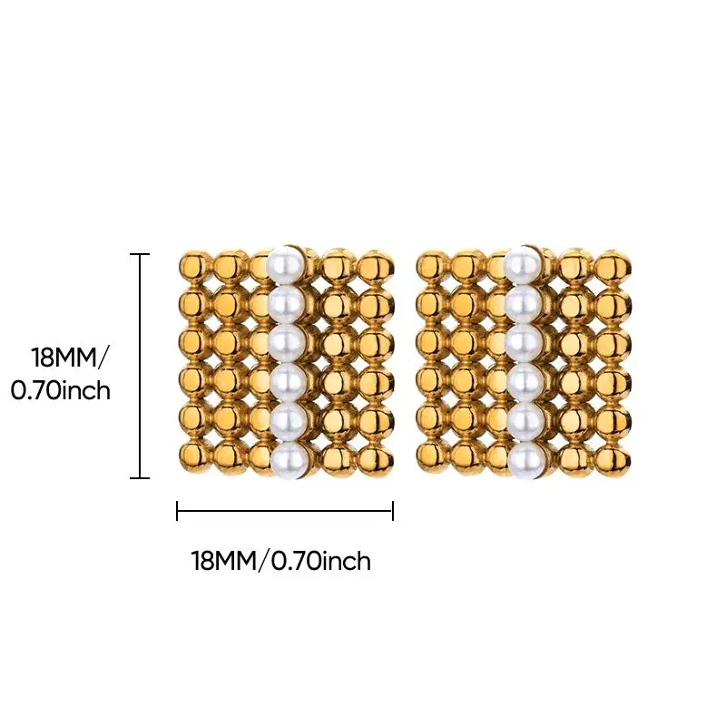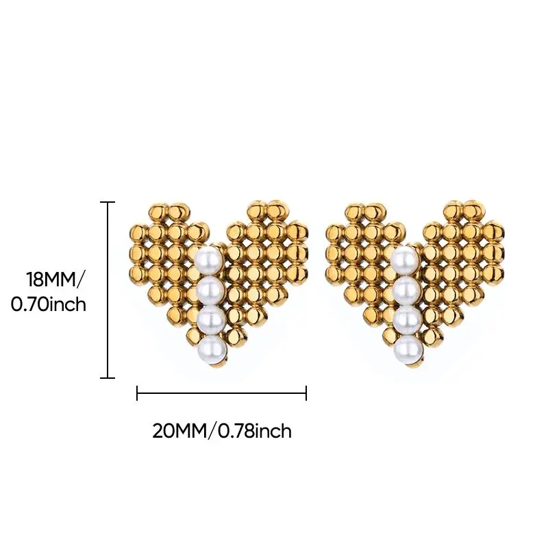 Gold Color Beads Heart Earrings for Women Stainless Steel Geometric Square Earrings Fashion Piercing Wedding Jewelry Christmas