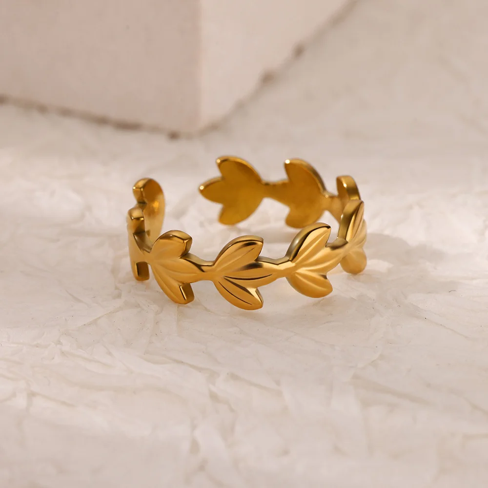 Gold Color Olive Leaf Open Rings for Women Stainless Steel Wedding Ring Aesthetic Fashion Waterproof Jewelry Gift for New Year