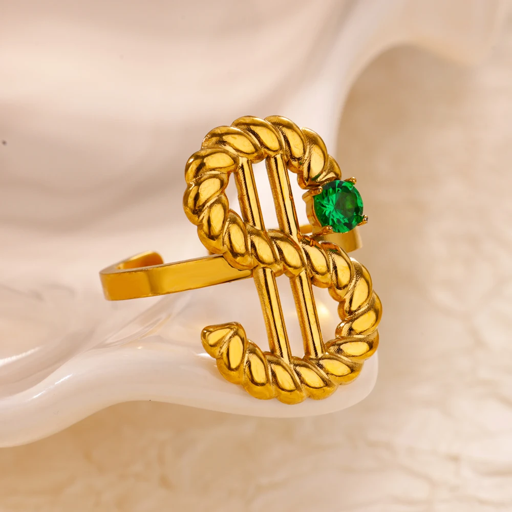 Gold Color Dollar Sign Rings for Women Stainless Steel Adjustable Geometric Sun Wave Ring Aesthetic Wedding Fashion Jewelry Gift