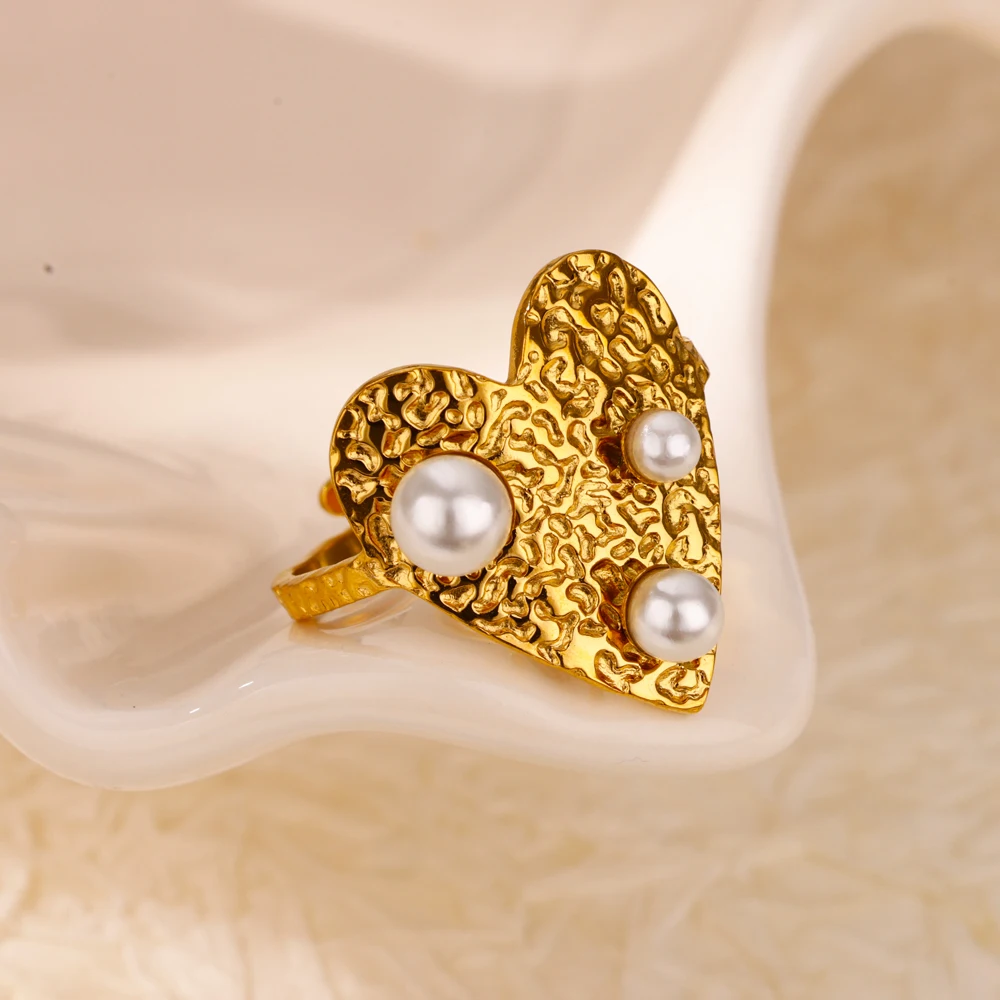 Gold Color Crossed Beads Rings for Women Stainless Steel Open Adjustable Ring Aesthetic Wedding Waterproof Jewelry Gift