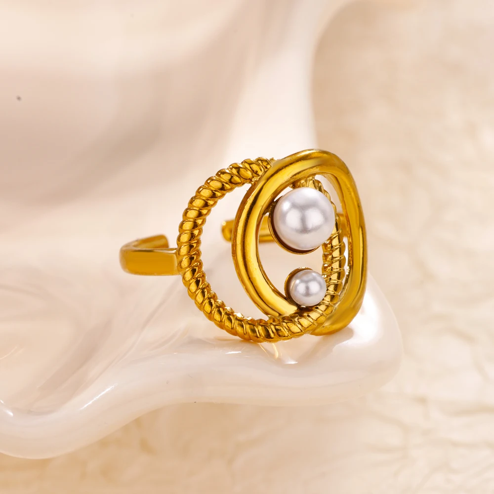 Gold Color Geometric Round Open Rings for Women Stainless Steel Wedding Ring Aesthetic Fashion Waterproof Jewelry Gift