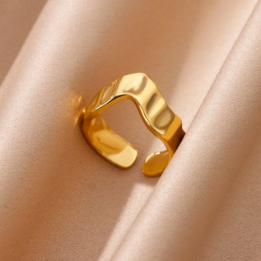 Gold Color Irregular Opening Rings for Women Stainless Steel Wedding Ring Fashion Wedding Party Jewelry Gift anillos mujer