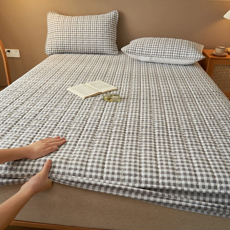 High-Quality Quilted Plaid Mattress Cover,Mattress Protector,- Antibacterial, Breathable,Comfortable for Fresh Sleep Experience