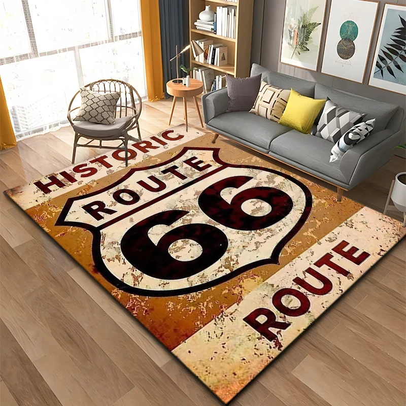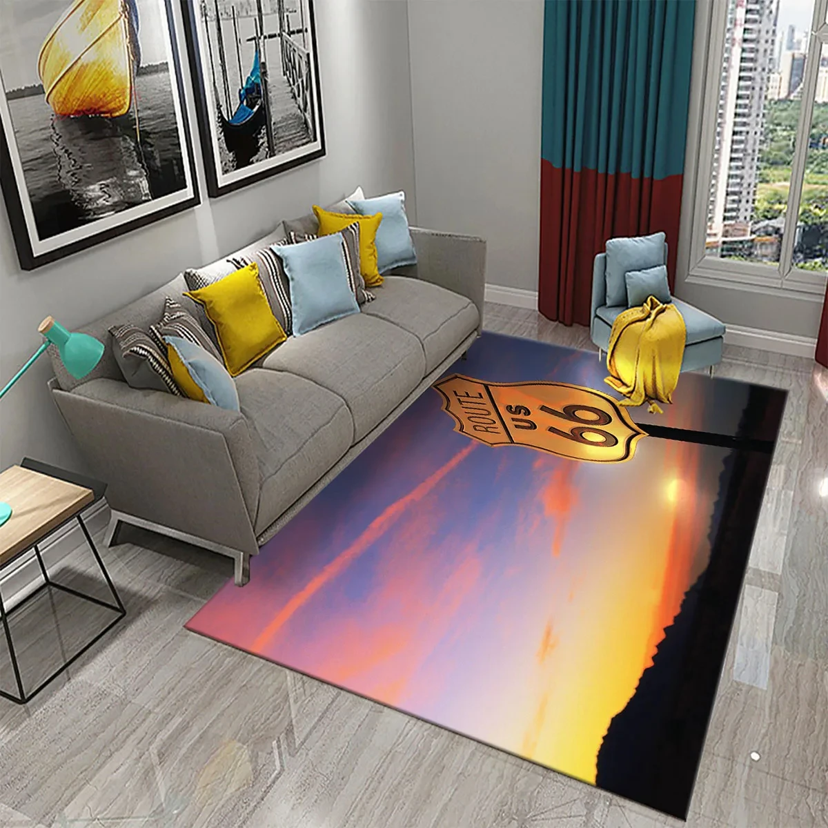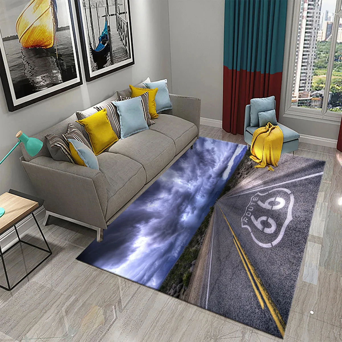 Historic Route 66 Pattern Carpet Non-slip Area Rug for Living Room Table Kids Bedroom Sofa Kitchen Decor Doormat Soft Floor Mat