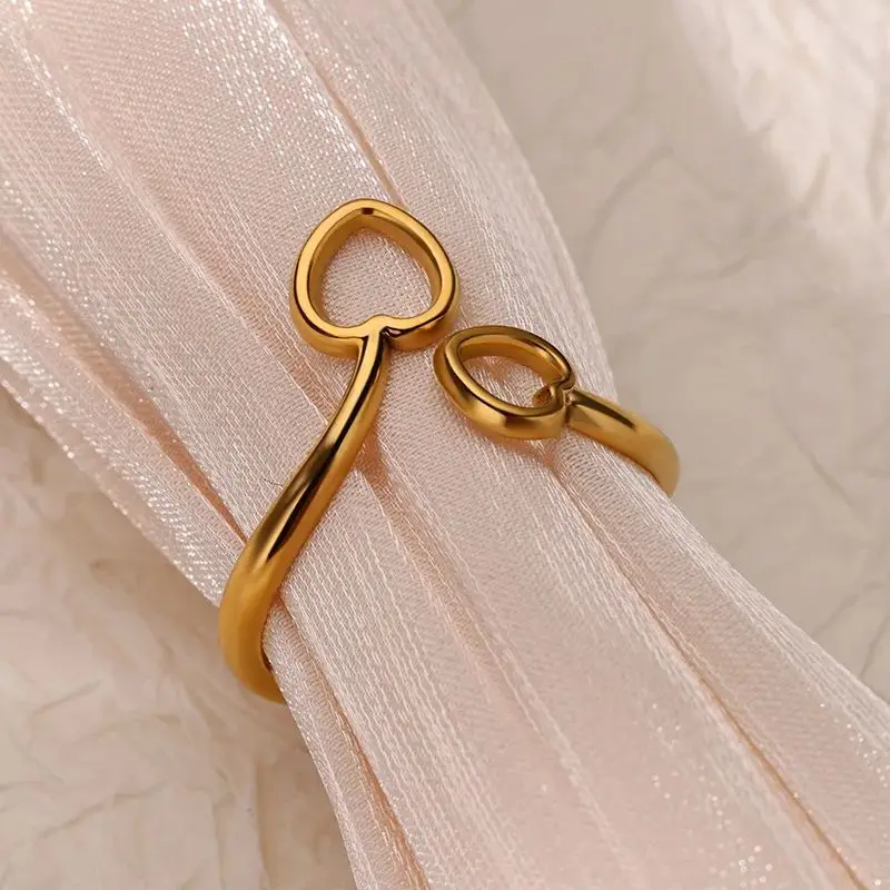 Hollow Geometric Heart Rings for Women Stainless Steel Gold Color Adjustable Ring Aesthetic Wedding Fashion Waterproof Jewelry