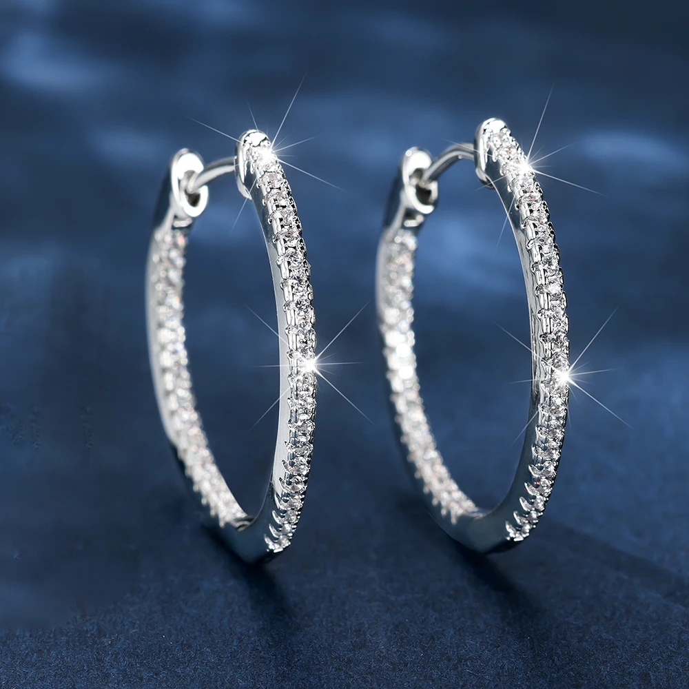 Hiphop Blue Stone Round Hoop Earrings For Women Silver Gold Color White Zircon Punk Thin Circle Earrings Wedding Party Jewelry