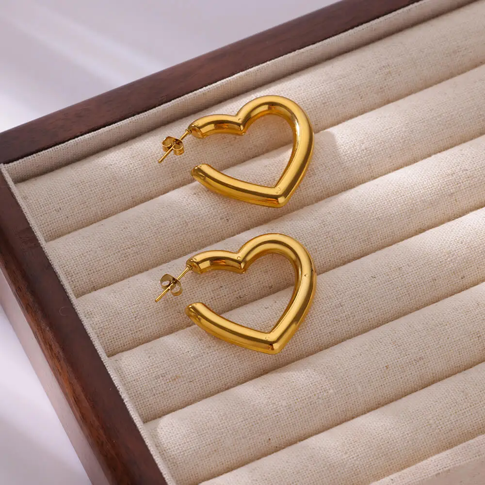 Hollow Heart Hoop Earrings for Women Stainless Steel Gold Color Heart Earrings 2024 Trend Ear Piercing Wedding Jewelry Gift