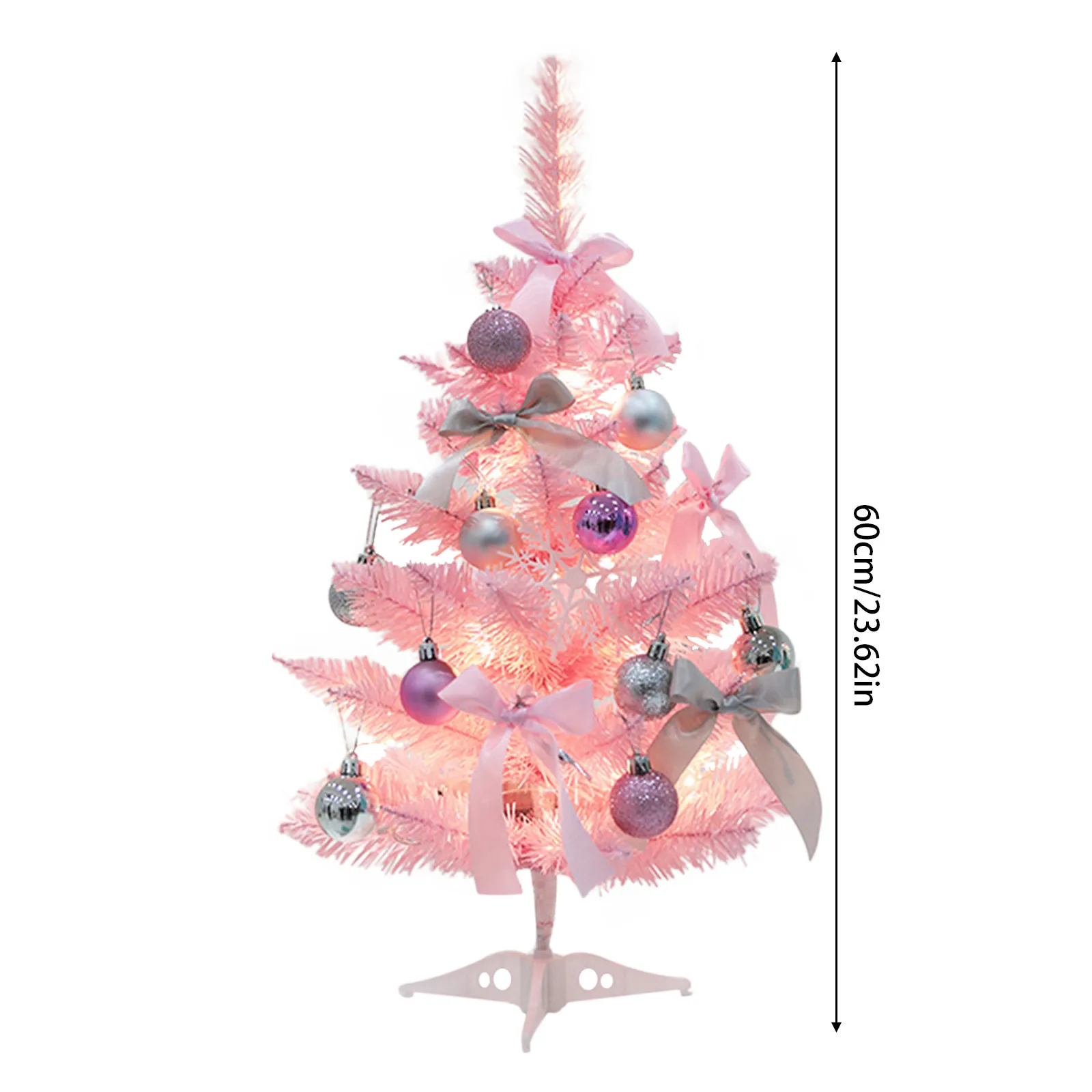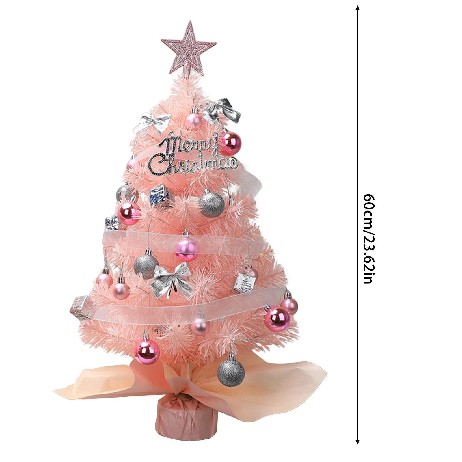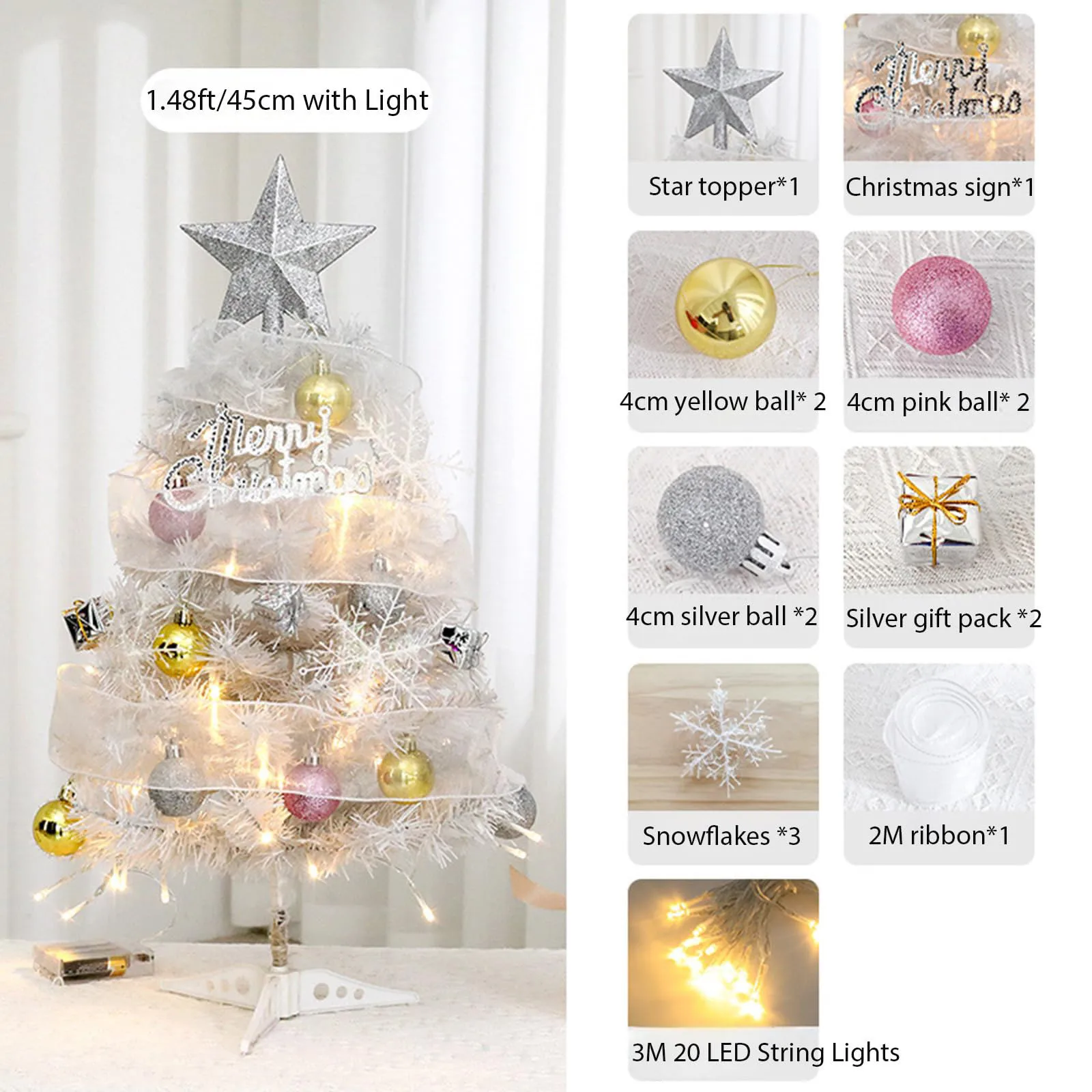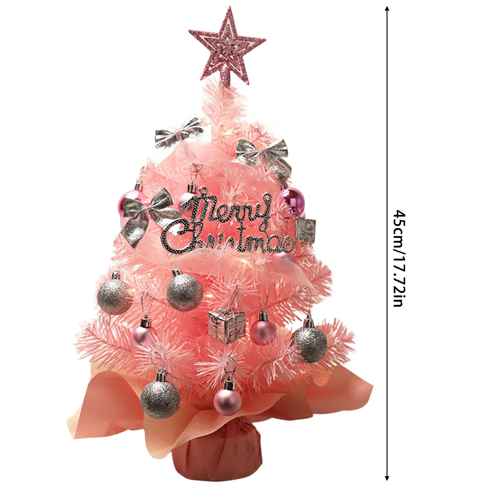 Hot Sale 45/60cm Christmas Tree With lights White/Pink Christmas Tree With Star Christmas Miniature Pine With Ornaments