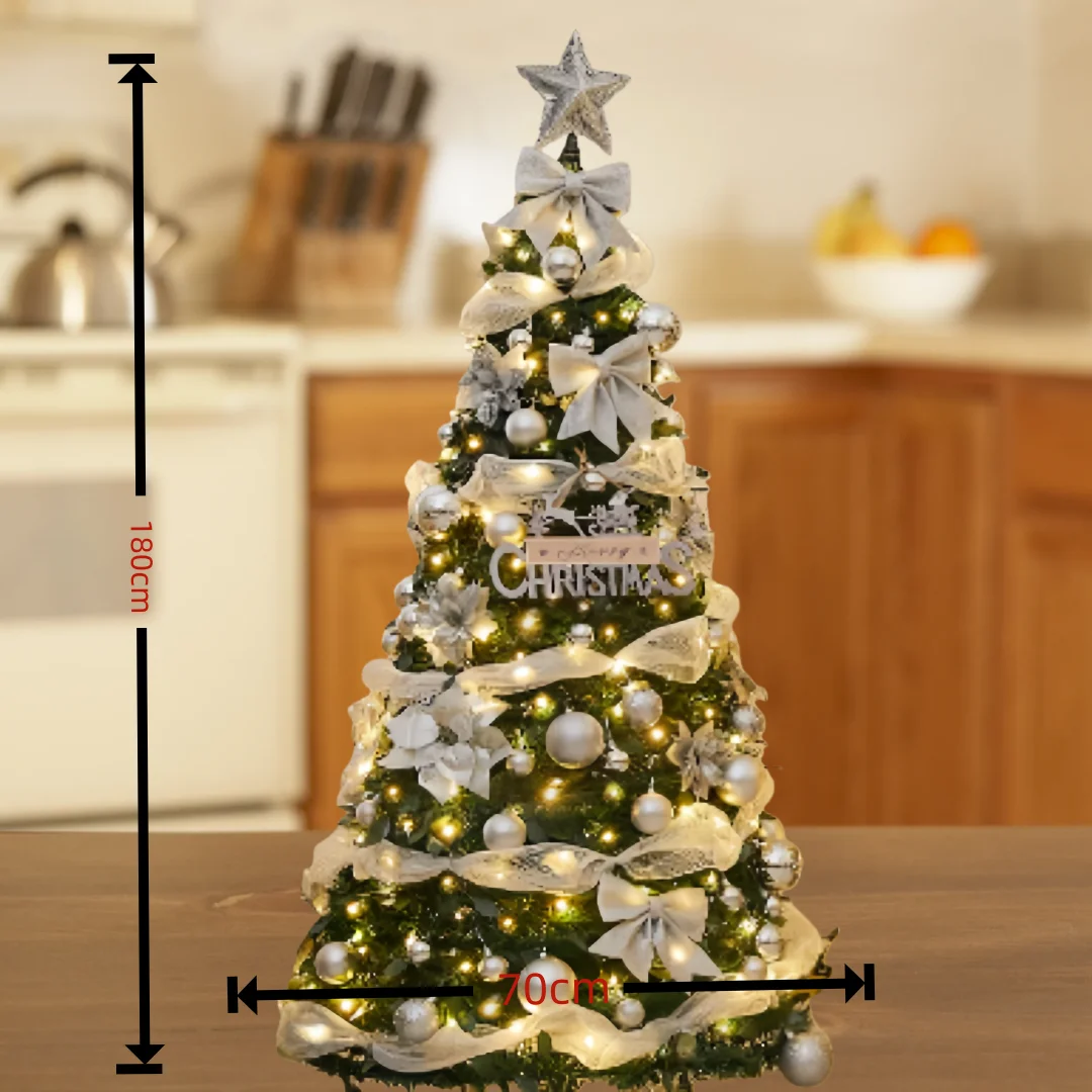 Hot Sale 120/150/180/210cm Foldable Pre-Decorated Christmas Tree Pop-Up Festive Decoration Home Decor Portable Christmas Tree