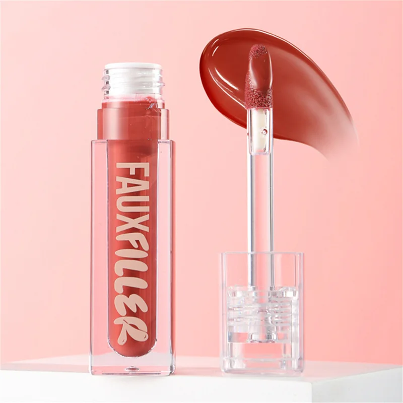 Huda Beauty Faux Filler Shiny Non Sticky Lip Gloss Hydrating Crystal Clear LipstickPlumping Moisturizing Tinted Lip Oil Makeup