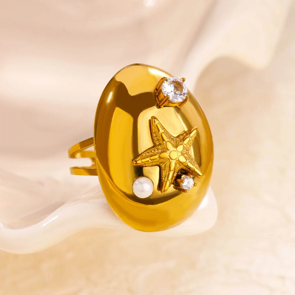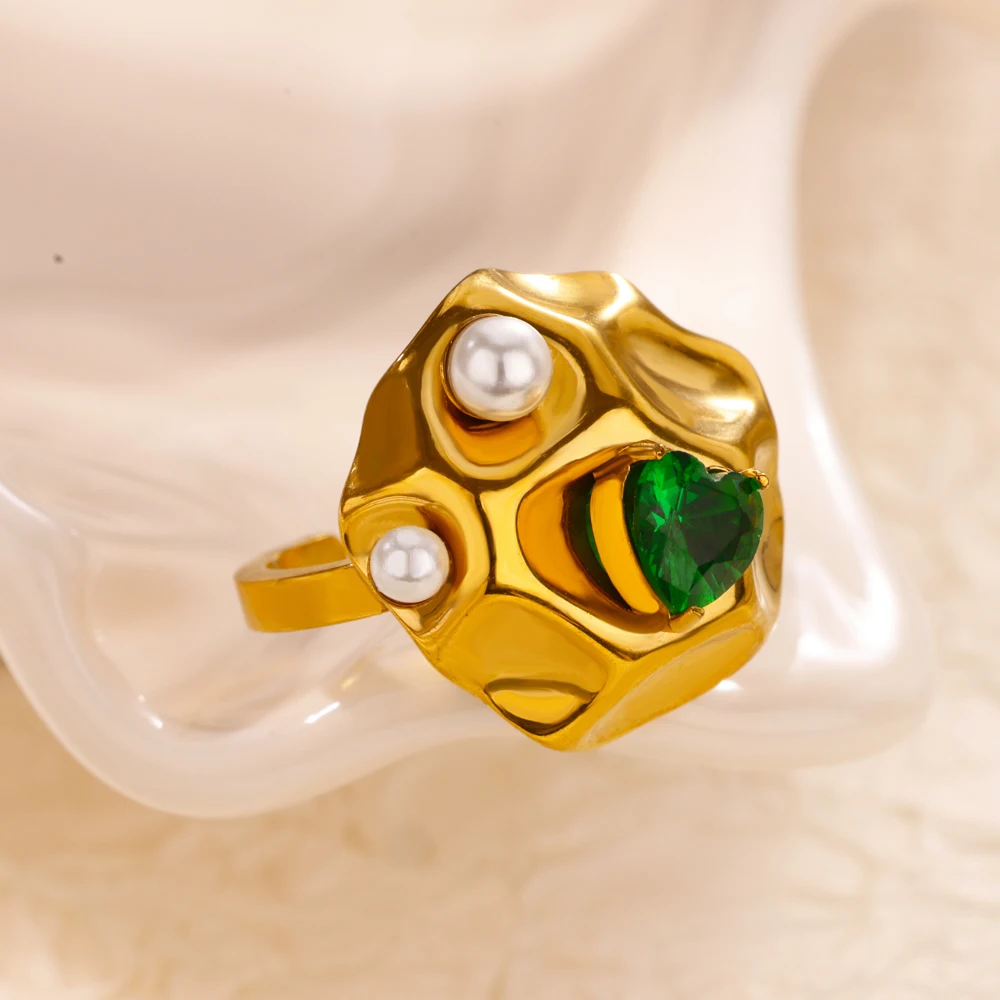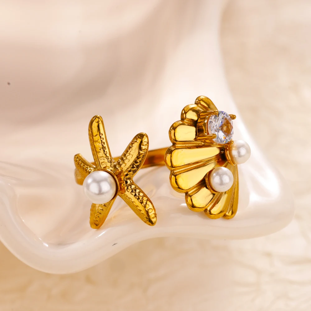 Imitation Pearl Waterdrop Double Layer Rings for Women Stainless Steel Gold Color Geometric Open Ring Aesthetic Wedding Jewelry