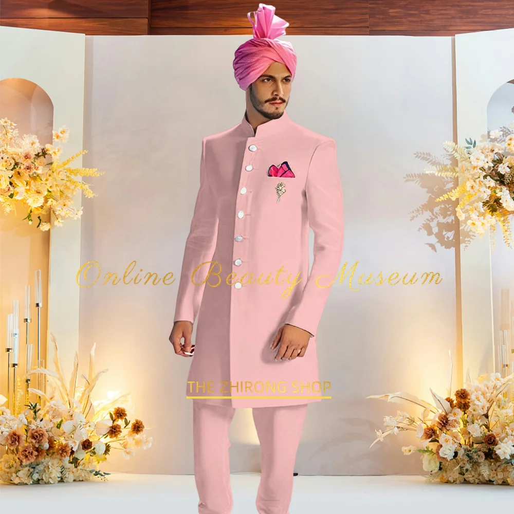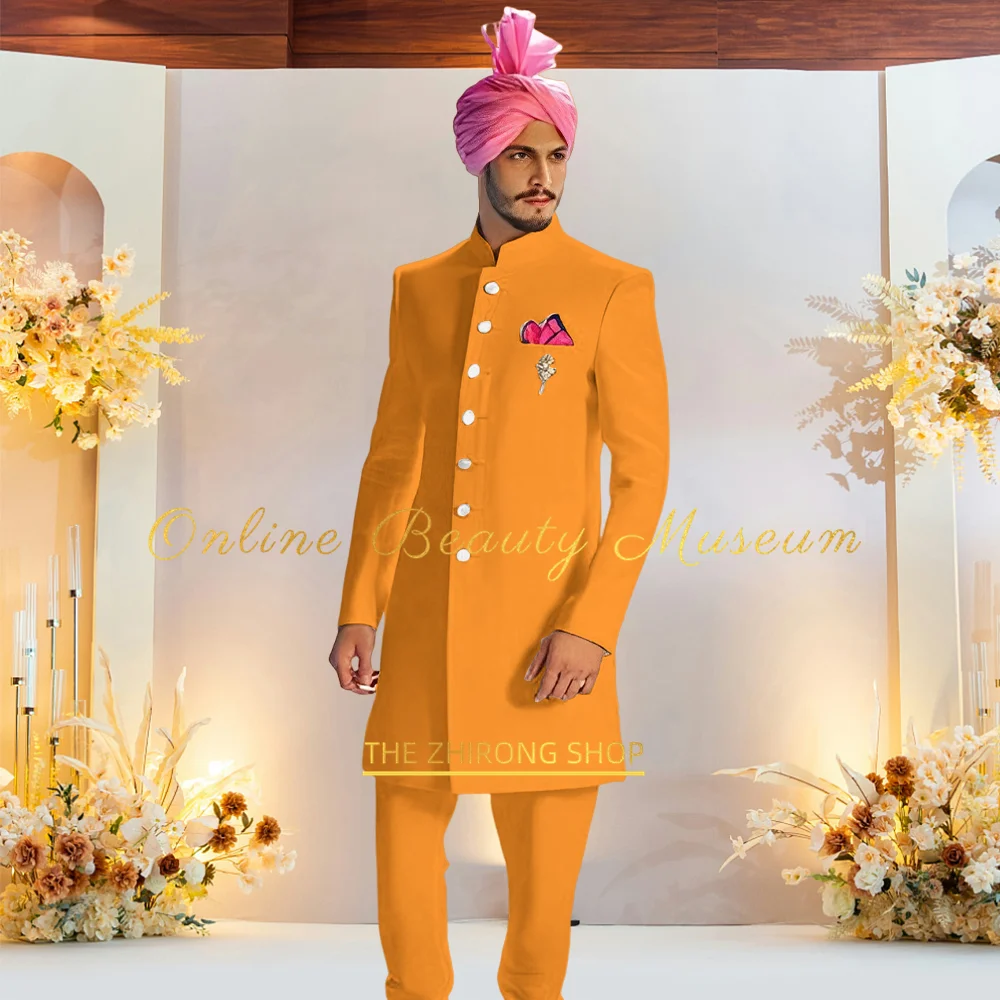 Indian Men’s 2-piece Suit (Jacket+pants) Classic Sherwani for Indo Wedding Reception Sangeet Groom Cocktail Party Custom Dress