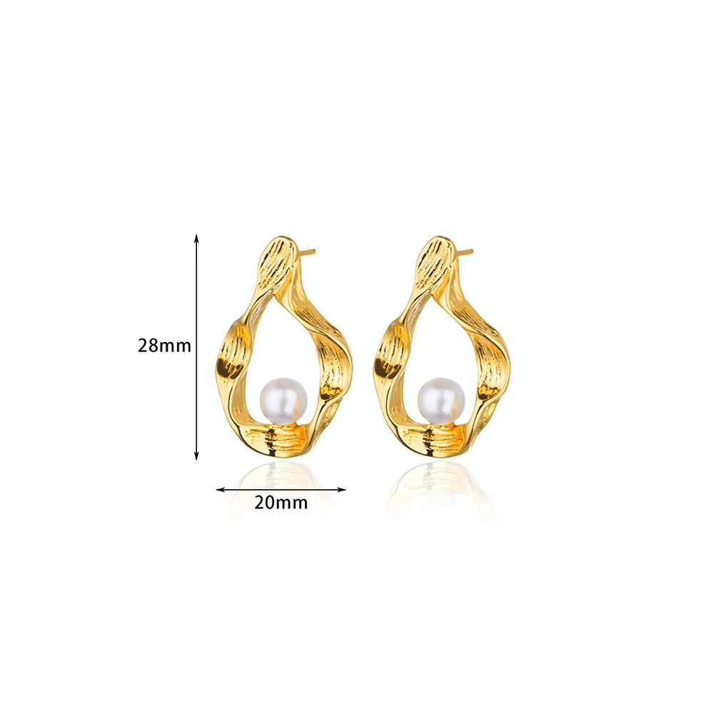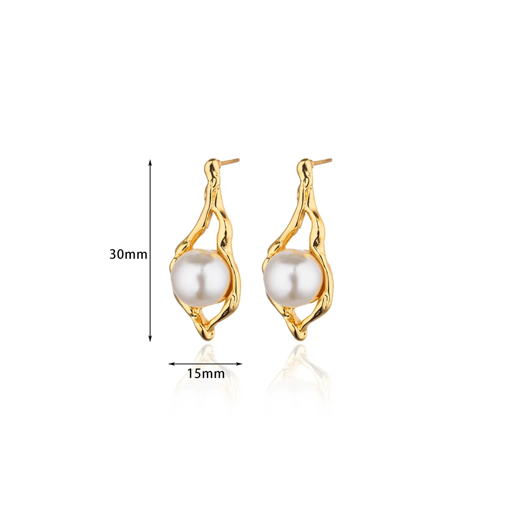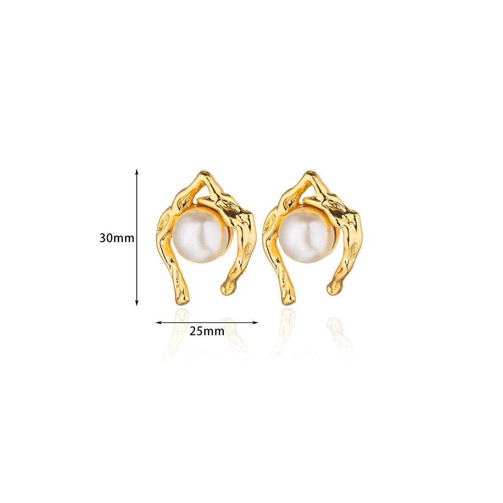 Irregular Imitation Pearl Earrings for Women Stainless Steel Gold Color Stud Earrings 2024 Trend Wedding Jewelry Gift New In