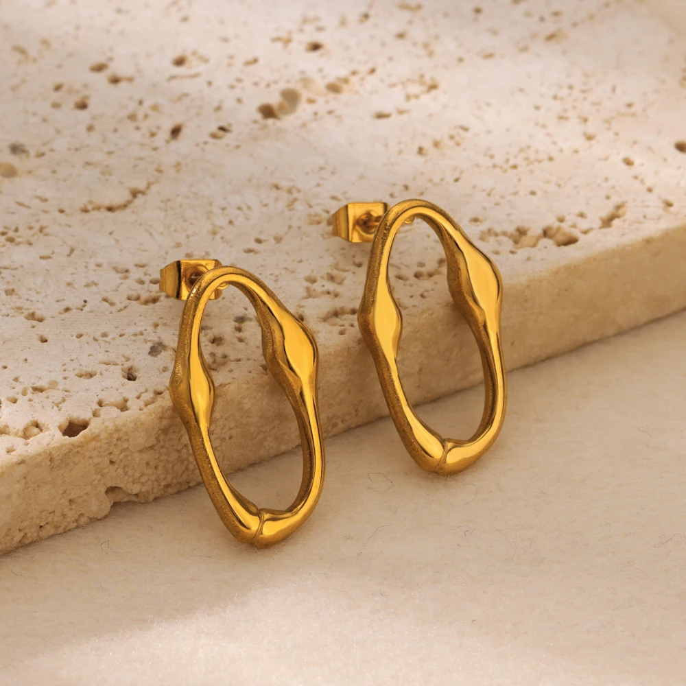 Irregular Geometric Earrings for Women Stainless Steel Gold Color Stud Earrings 2024 Trend Ear Piercing Wedding Jewelry Gift