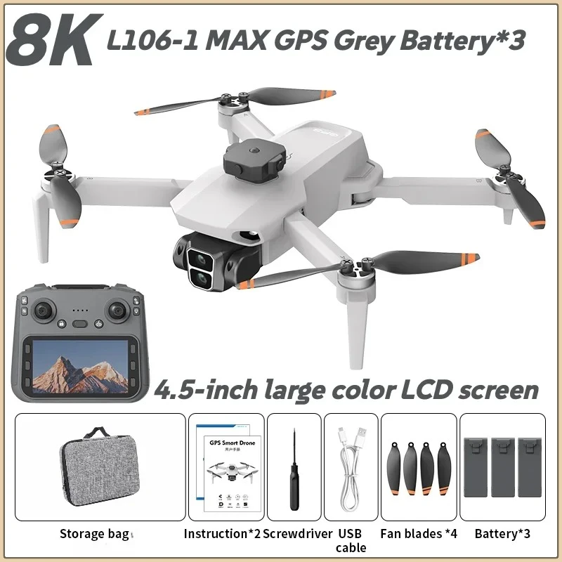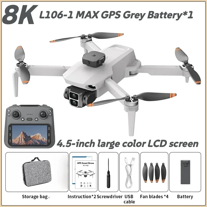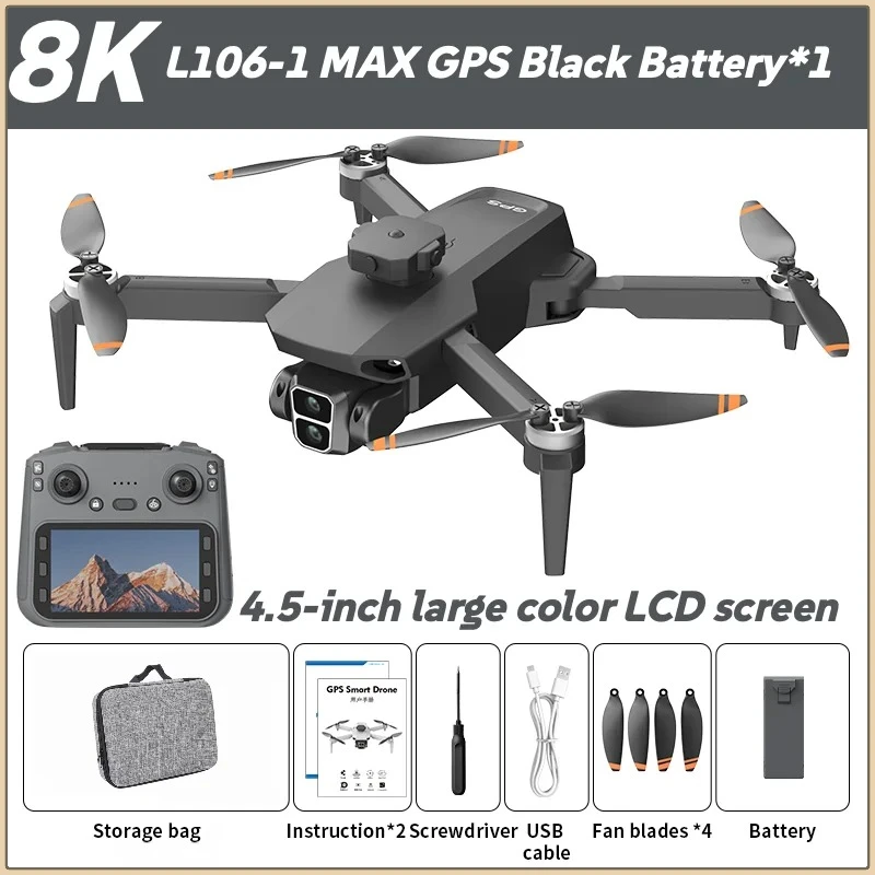 L106-1 MAX GPS 182.2g Lightweight Drone Brushless Motor 4.5″ Color LCD Screen Remote Control Adjustable Camera Toy for Boy Gifts