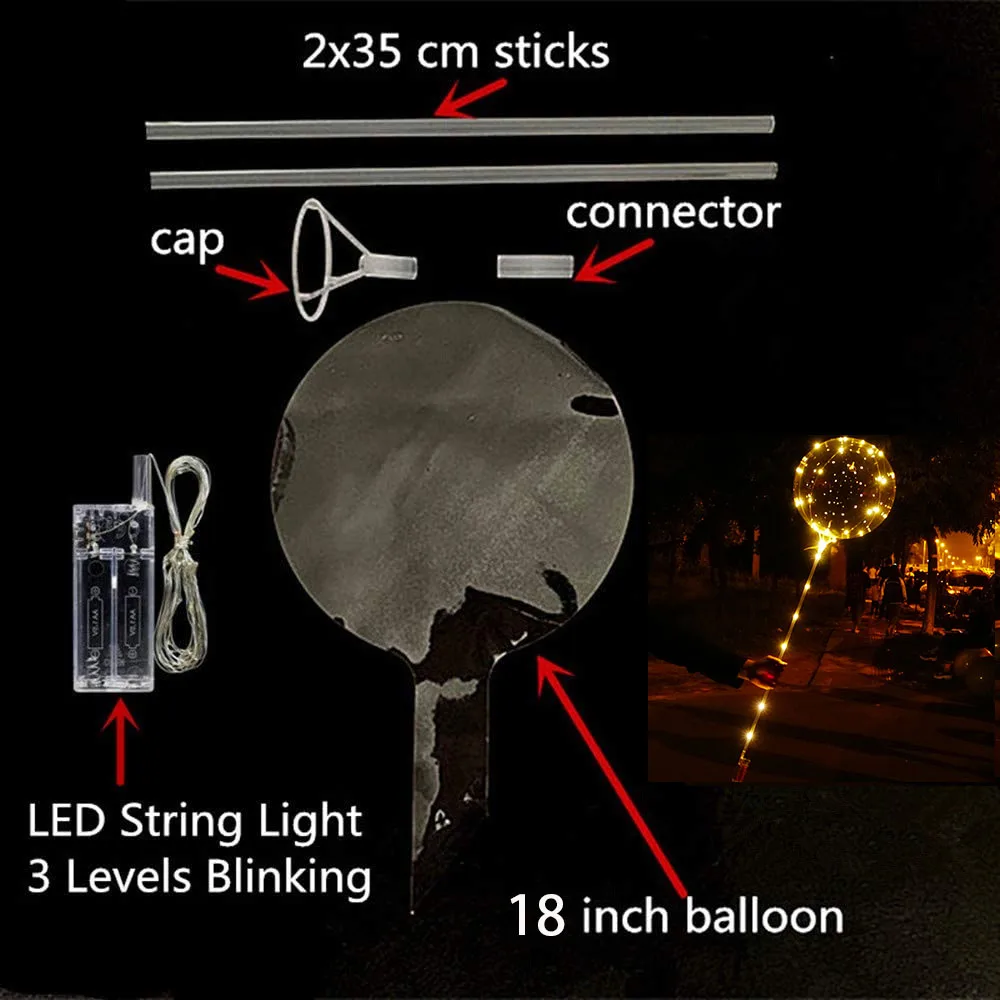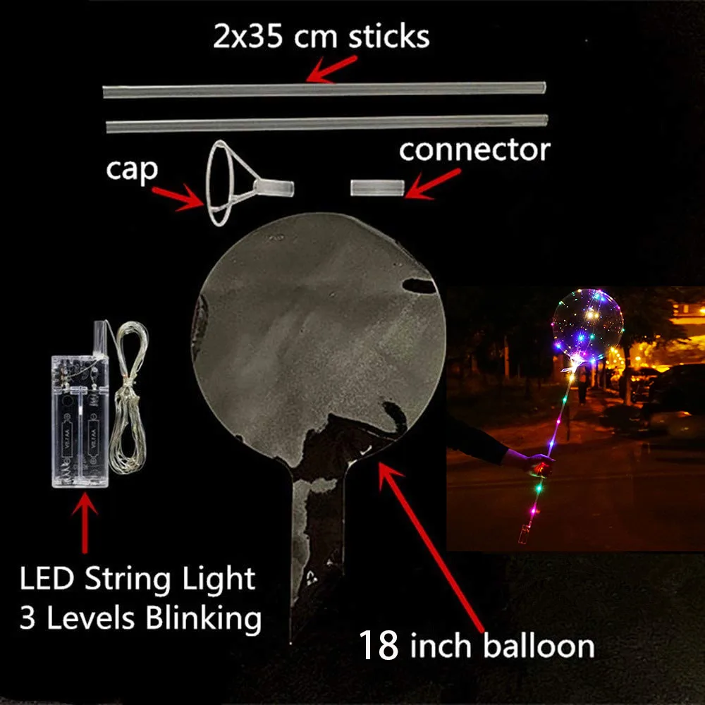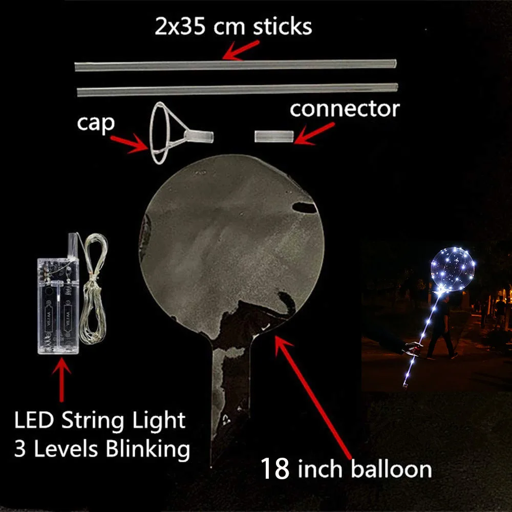 1pc LED Light Up Balloons with Stick Flashing LED String Lights 18Inch Bubble Balloons for Christmas Birthday Party Decoration