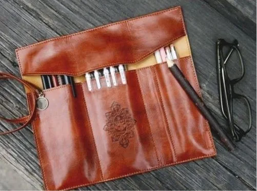 1pc Luxury Pencil Case School Supplies Stationery Roll Leather High Quality Pen
