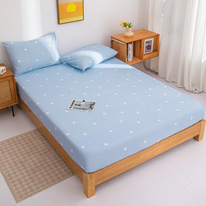 1PC Light Blue Heart Fitted Sheet, Cute Pattern Elastic Deep Pocket Bed Sheet, Sweet Bedding for Bedroom Decor