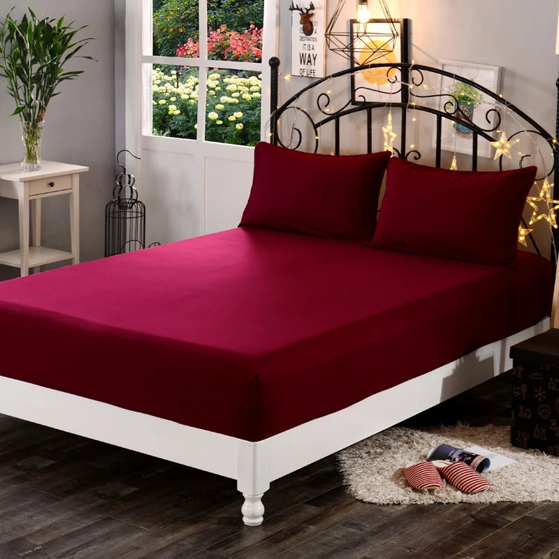 1Pc High Quality 100% Polyester Solid Color Fitted Sheet Mattress Cover Four Corners With Elastic Band Bed Sheets