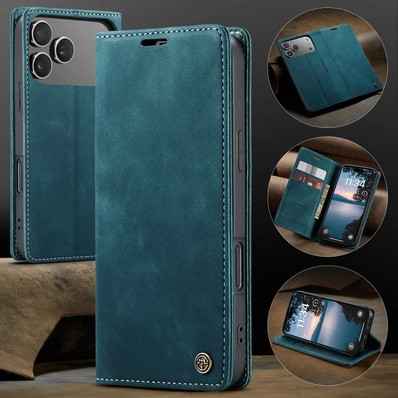CaseMe Retro Magnetic Flip PU Leather Case for iPhone 17 Air 17 Pro 16 15 14 13 12 11 XS XR 8 7 6S 5 SE Wallet Cover Phone Coque