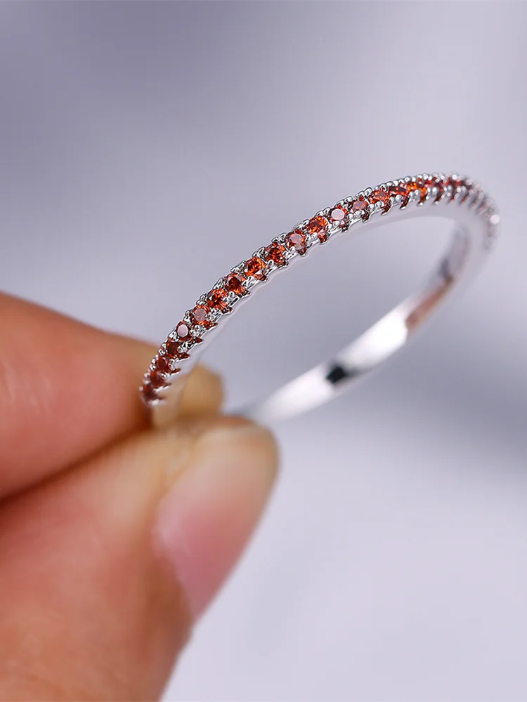 Red Crystal Small Round Stone Thin Engagement Rings For Women Vintage Silver Color Wedding Band Minimalist Stackable Jewelry
