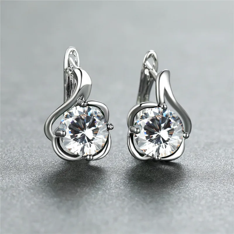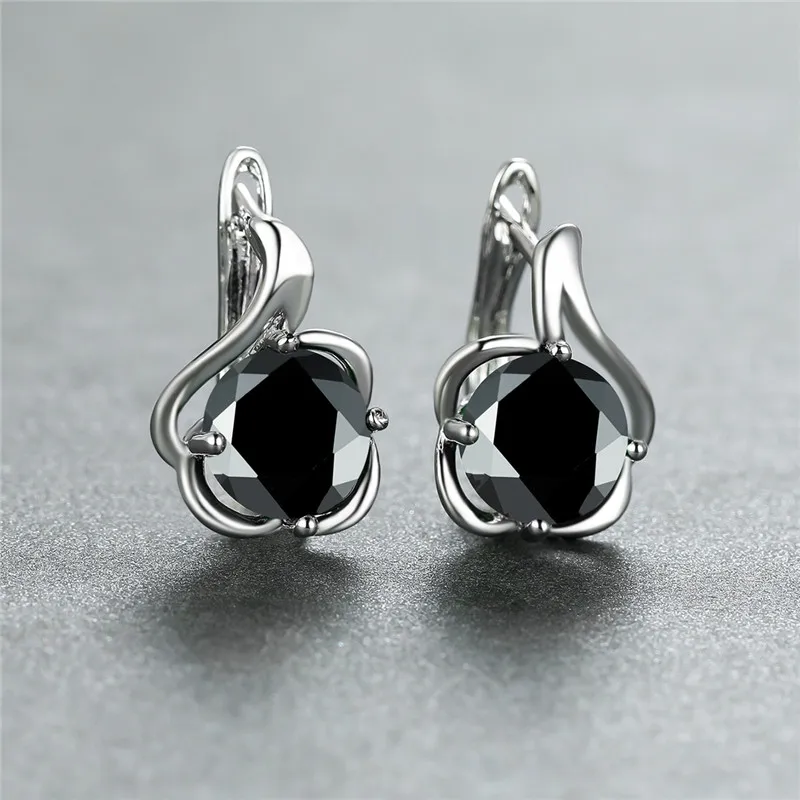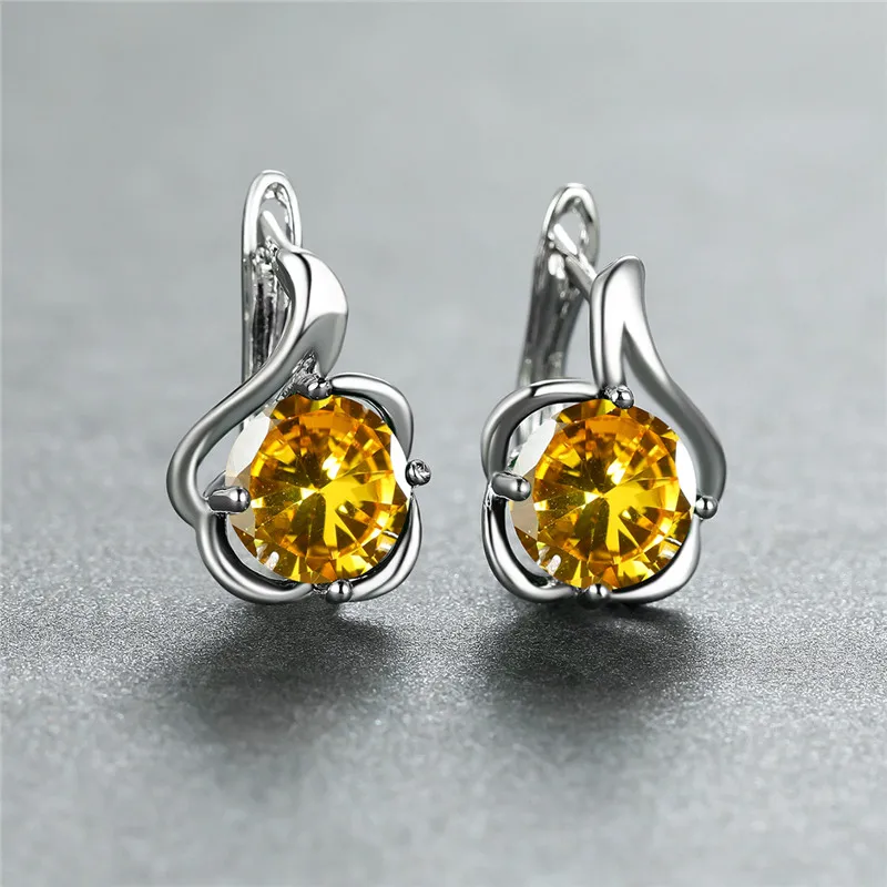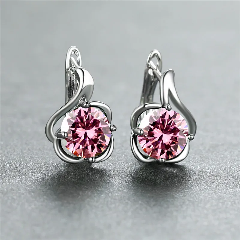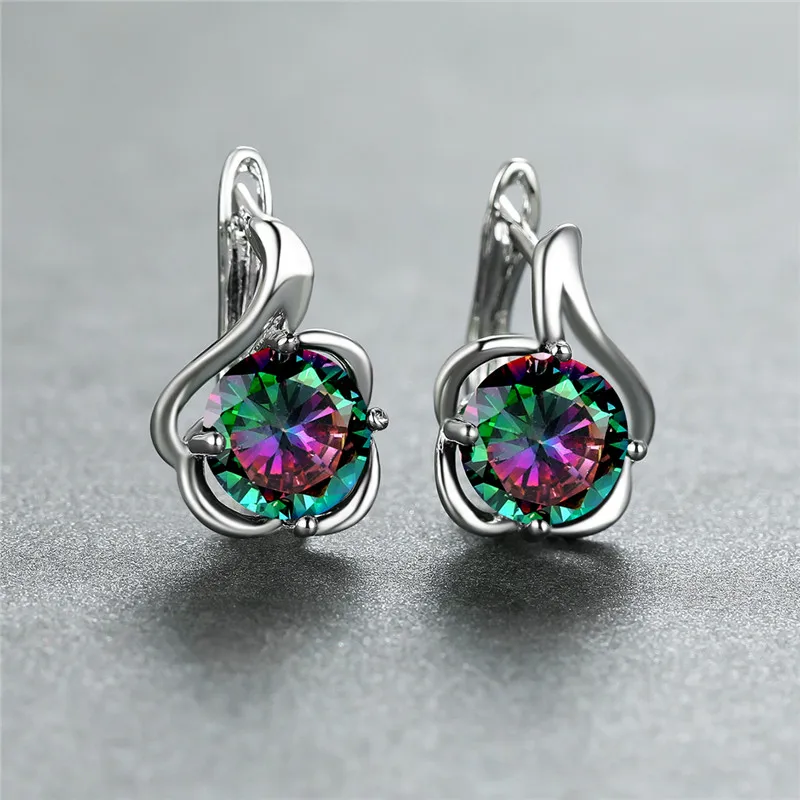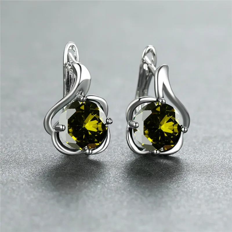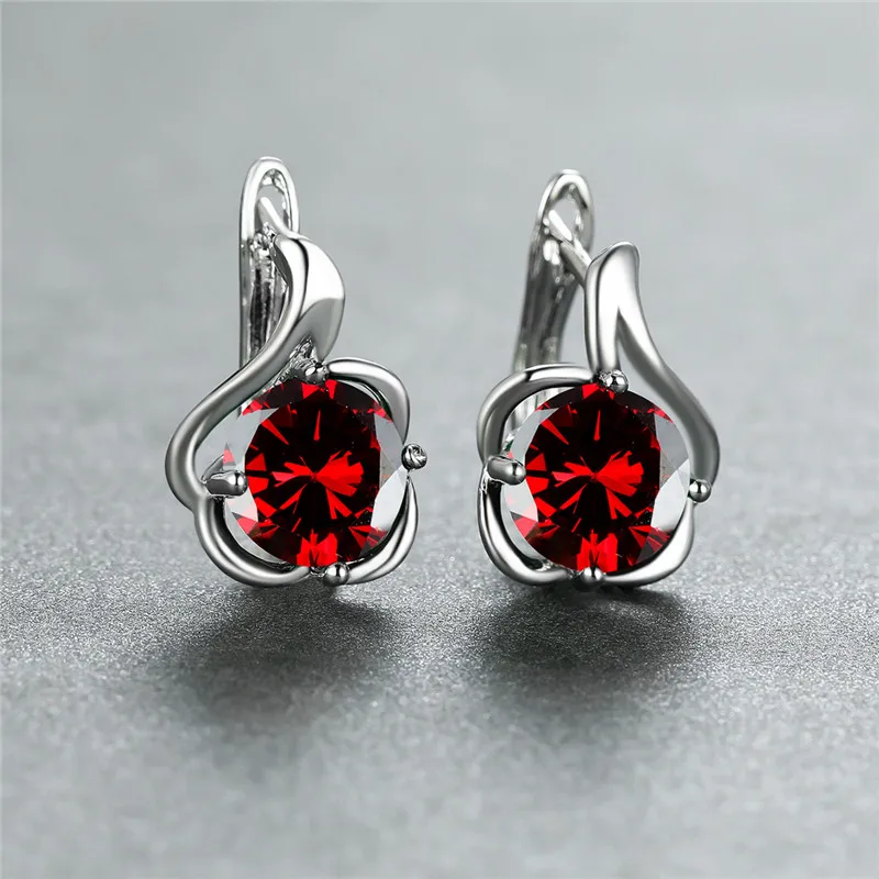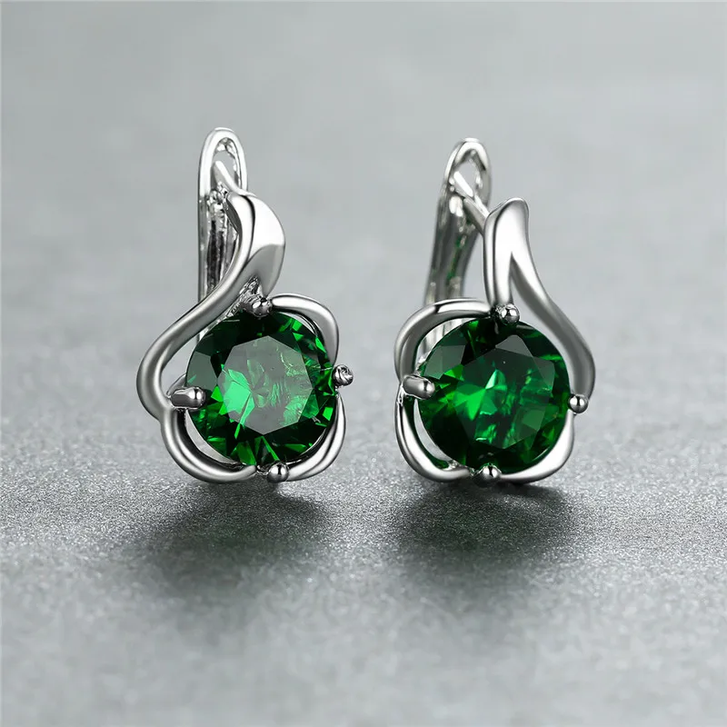 Red Green Zircon Round Stone Female Crystal Hoop Earrings Boho Silver Color Wedding Jewelry For Women