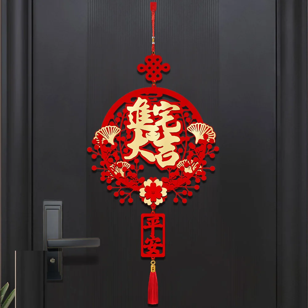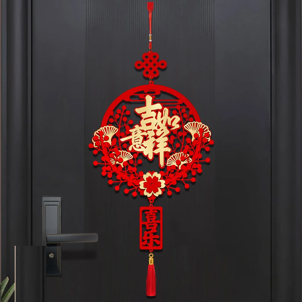 Red Classical Hanging Pendant With Tassels Ornament Window Door Adornment Festival Large Pendant Red Decor Chinese New Year Deco