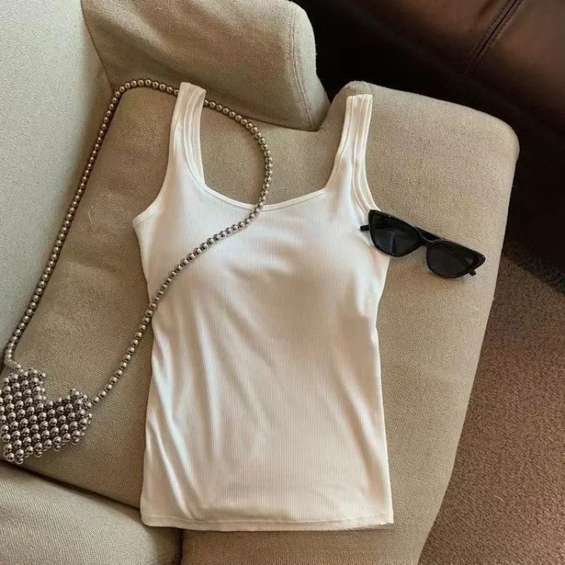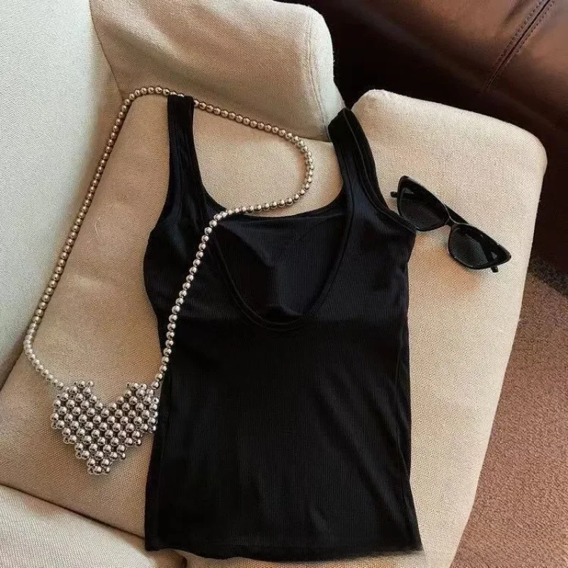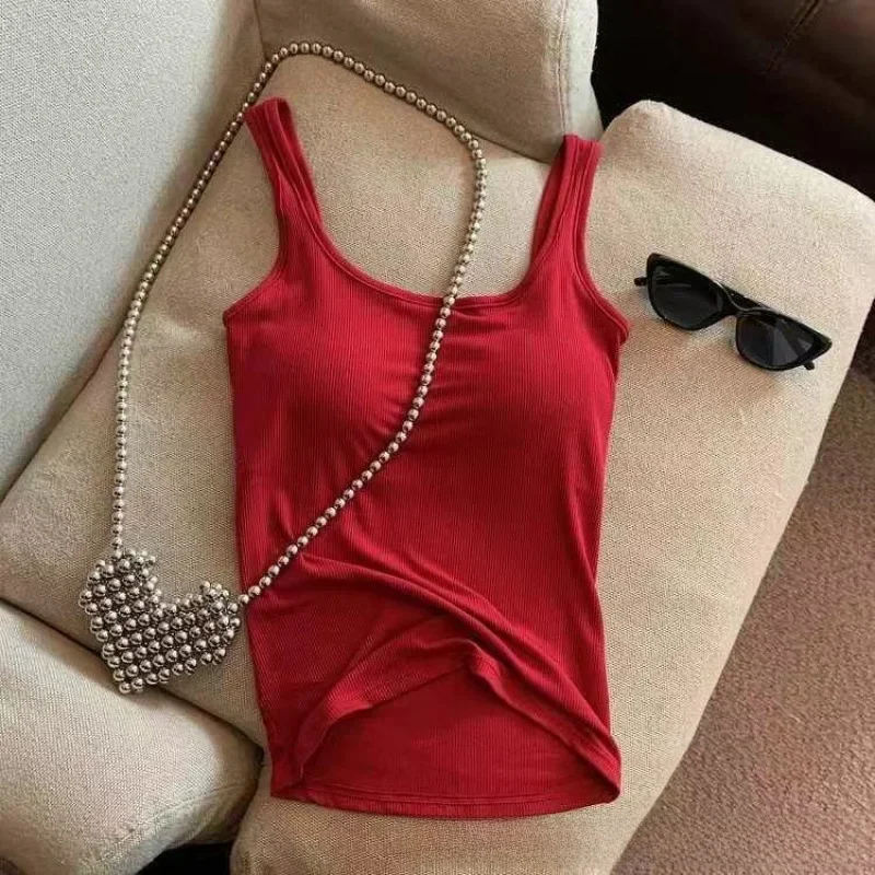 Red Mini Tank Vest Women’s Summer Outerwear Chest Pad Beautiful Back Integrated Inner Base U-shaped Open-back Top