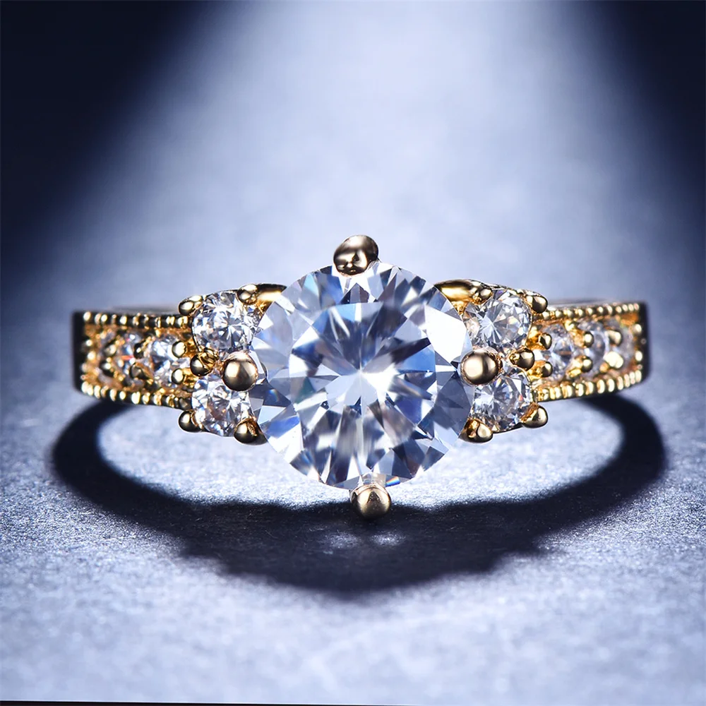Shining White Zircon Round Stone Wedding Rings For Women Vintage Gold Color Engagement Band Luxury Crystal Jewelry Mother’s Gift
