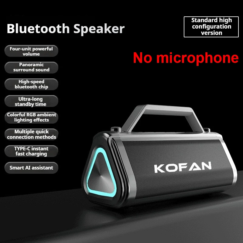 Shocking Bass Colorful Light Effect Bluetooth 5.0 Speaker With 2 Mics Portable Subwoofer Wireless Subwoofer Boombox Home Karaoke