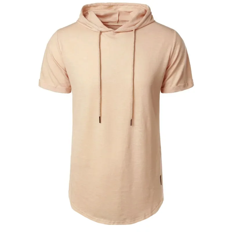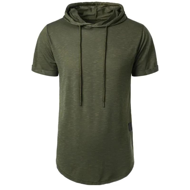 Short Sleeve Hoodie T-shirt for Men Lightweight Breathable Fashion Sports Fitness Running Tops Simple Style Male T-shirts