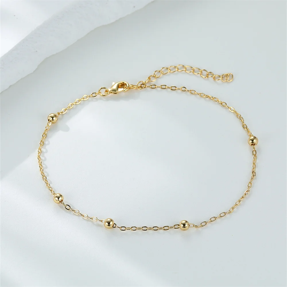 Simple Fashion Small Round Beads Anklets For Women Vintage Gold Color Thin Chain Ankle Bracelet Summer Beach Anklet Boho Jewelry